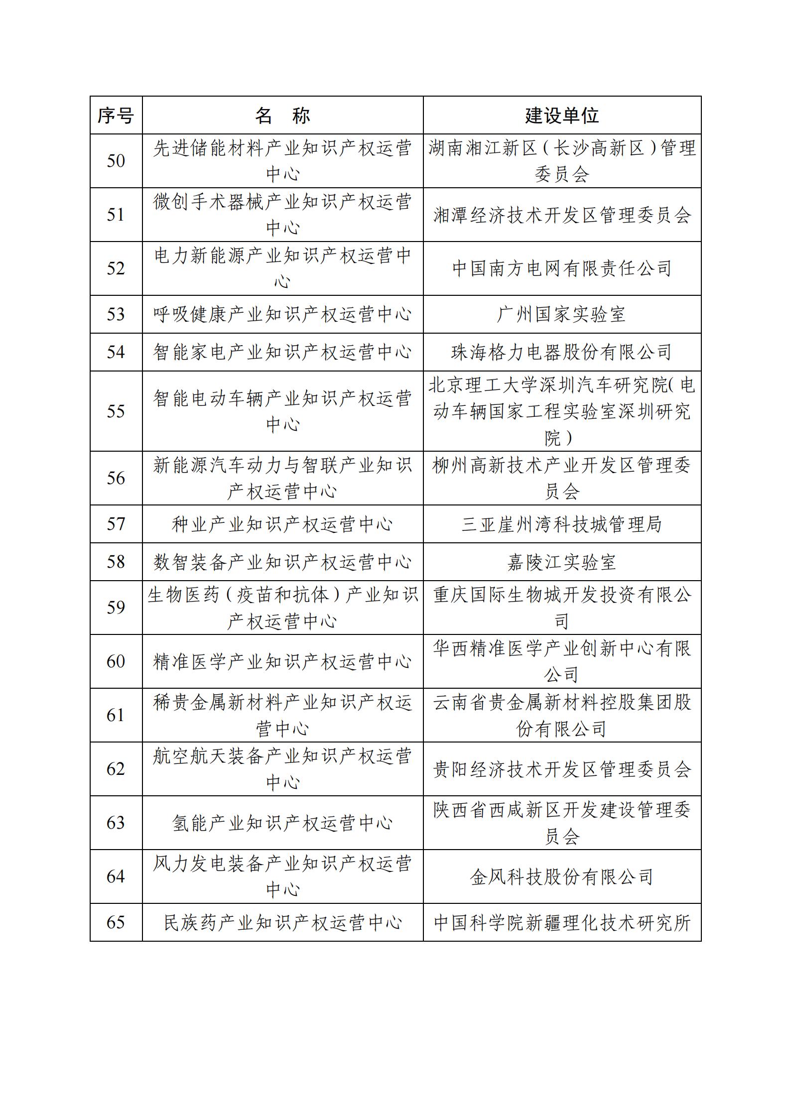 按照《产业知识产权运营中心建设管理工作指引(暂行)》,国家知识产权局组织开展了产业知识产权运营中心申报认定工作,经申报、推荐、评审、公示等程序,确定首批产业知识产权运营中心名单,现予以公布。