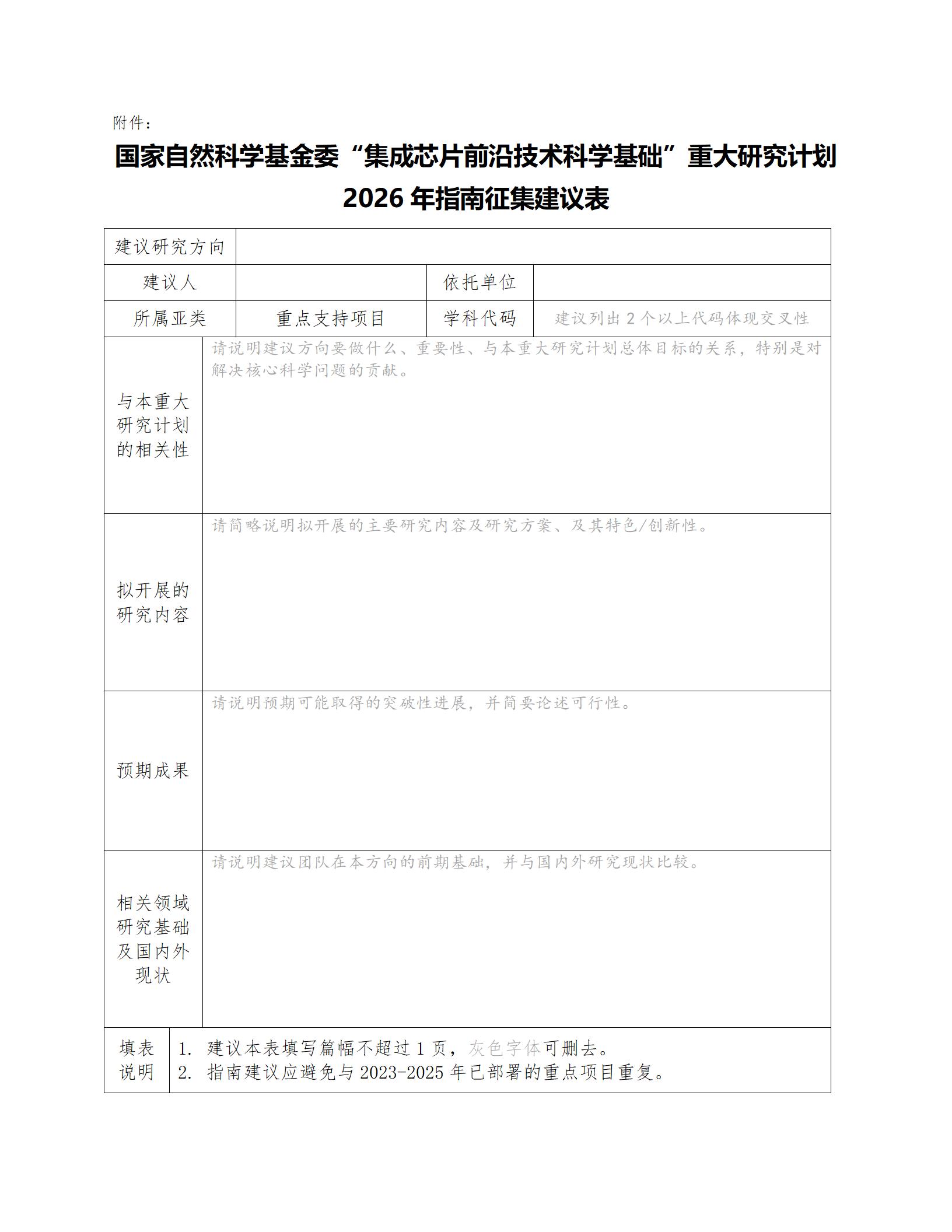 关于征集“集成芯片前沿技术科学基础”重大研究计划2026年度项目指南建议的通告
