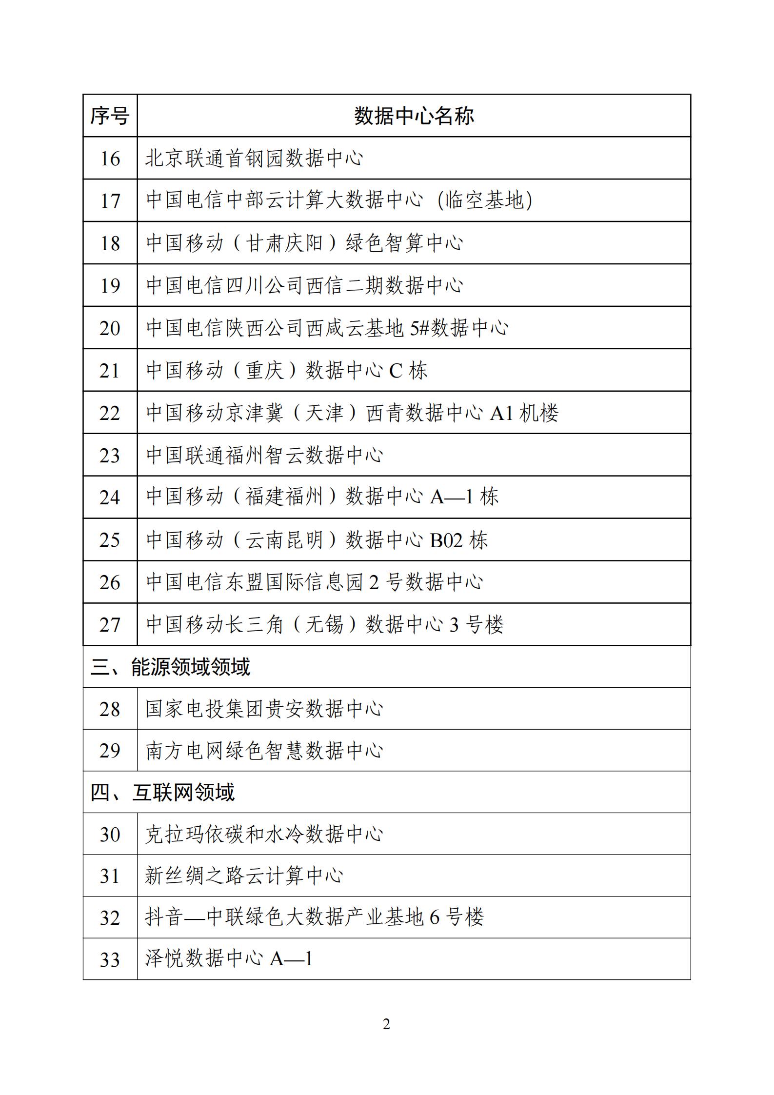 根据《工业和信息化部办公厅 国家发展改革委办公厅 商务部办公厅 金融监管总局办公厅 国管局办公室 国家能源局综合司关于组织开展2025年度国家绿色数据中心推荐工作的通知》(工信厅联节函〔2025〕279号),现将2025年度国家绿色数据中心名单予以公示,公示时间为2025年10月28日至11月3日。如有异议,请于公示期内将书面意见反馈至工业和信息化部(节能与综合利用司)。