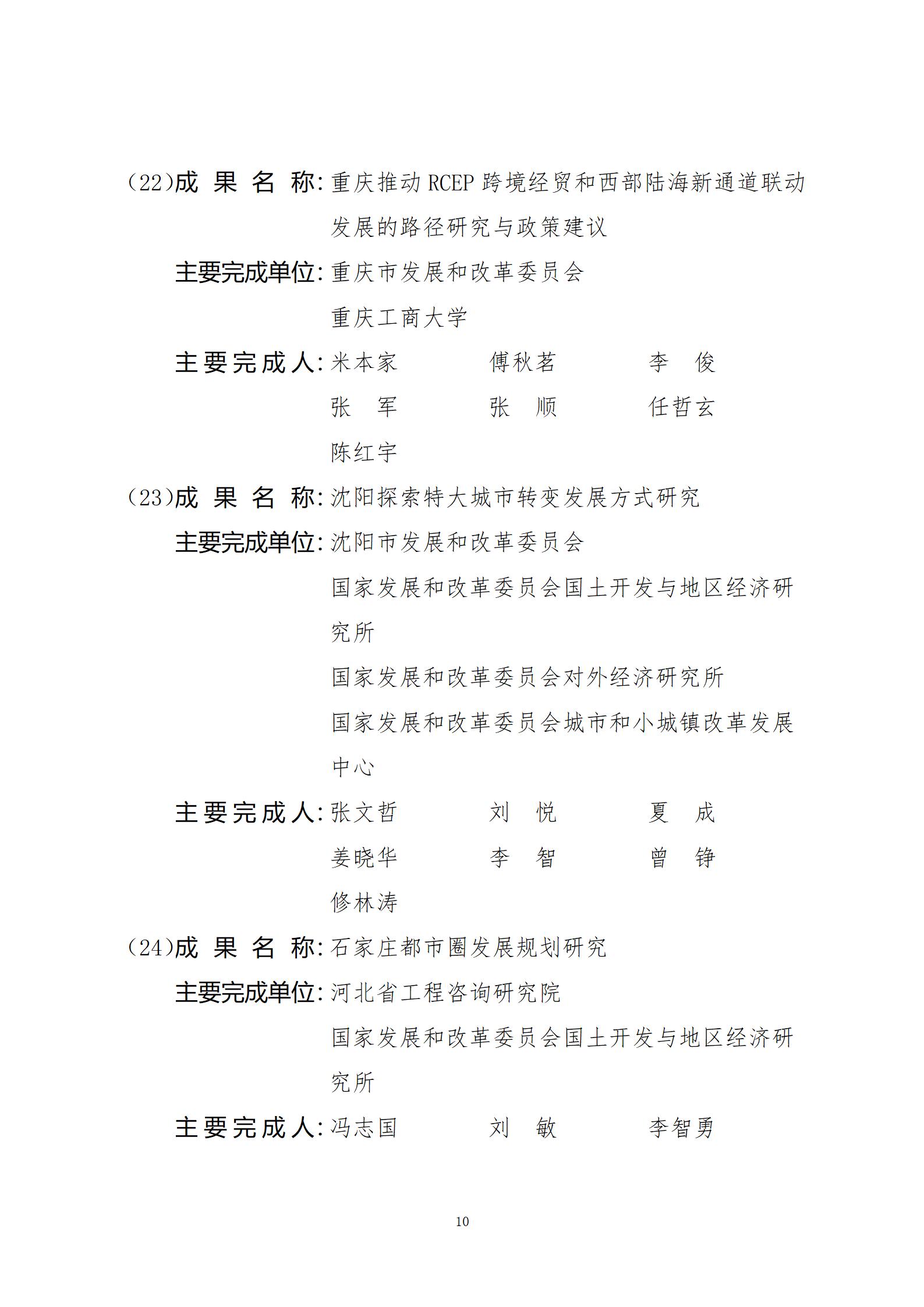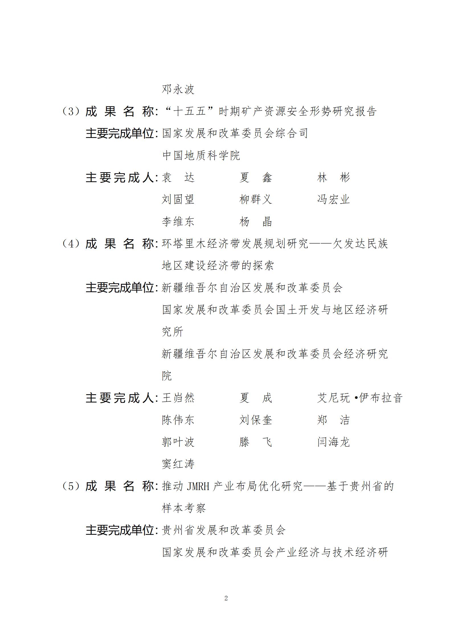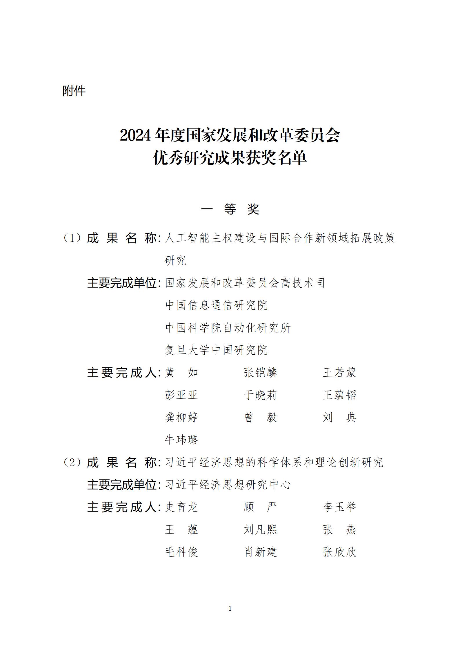 附件:2024年度国家发展和改革委员会优秀研究成果获奖名单