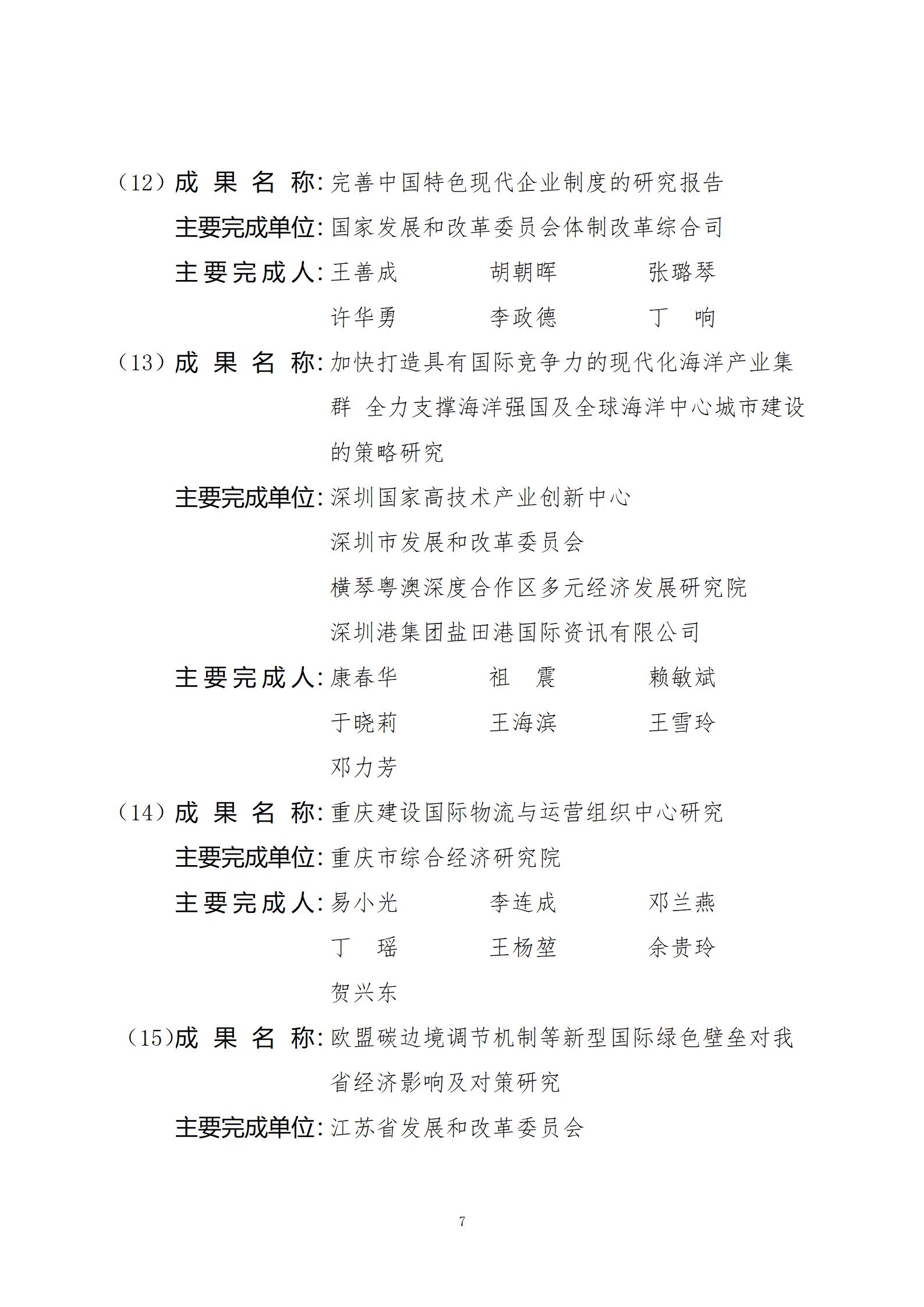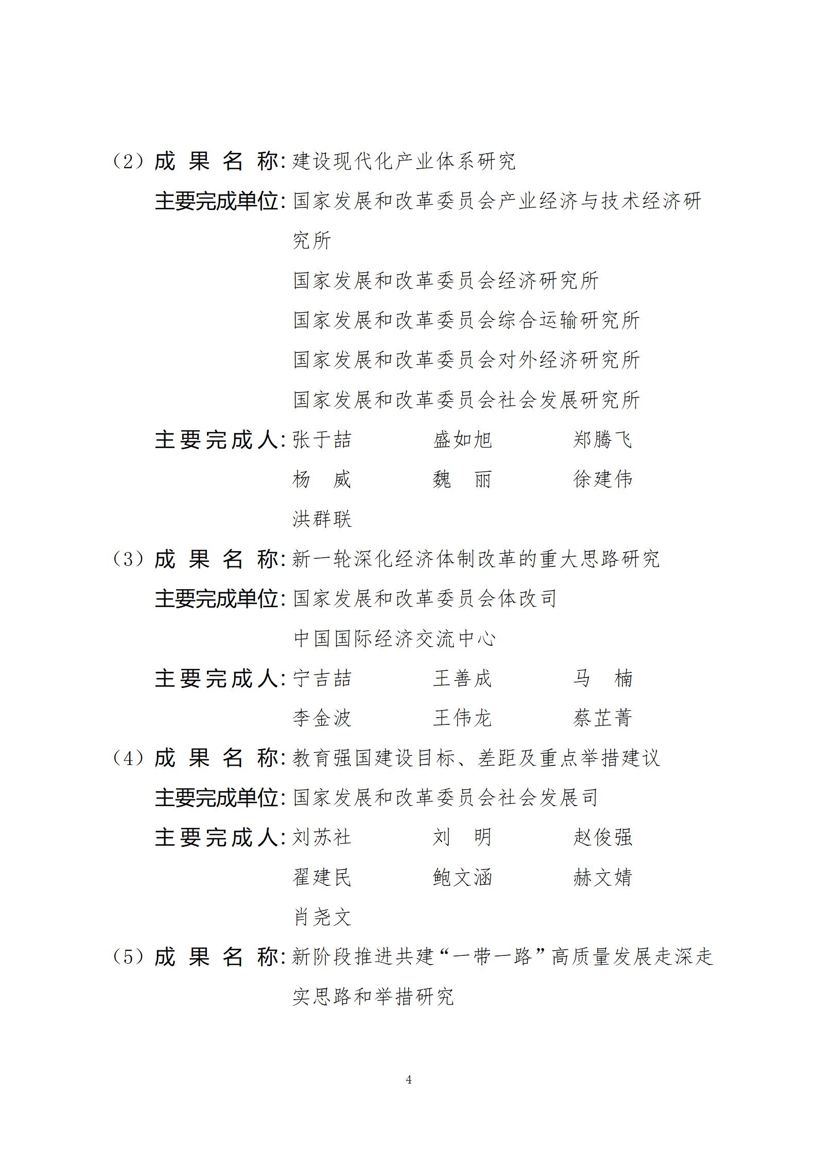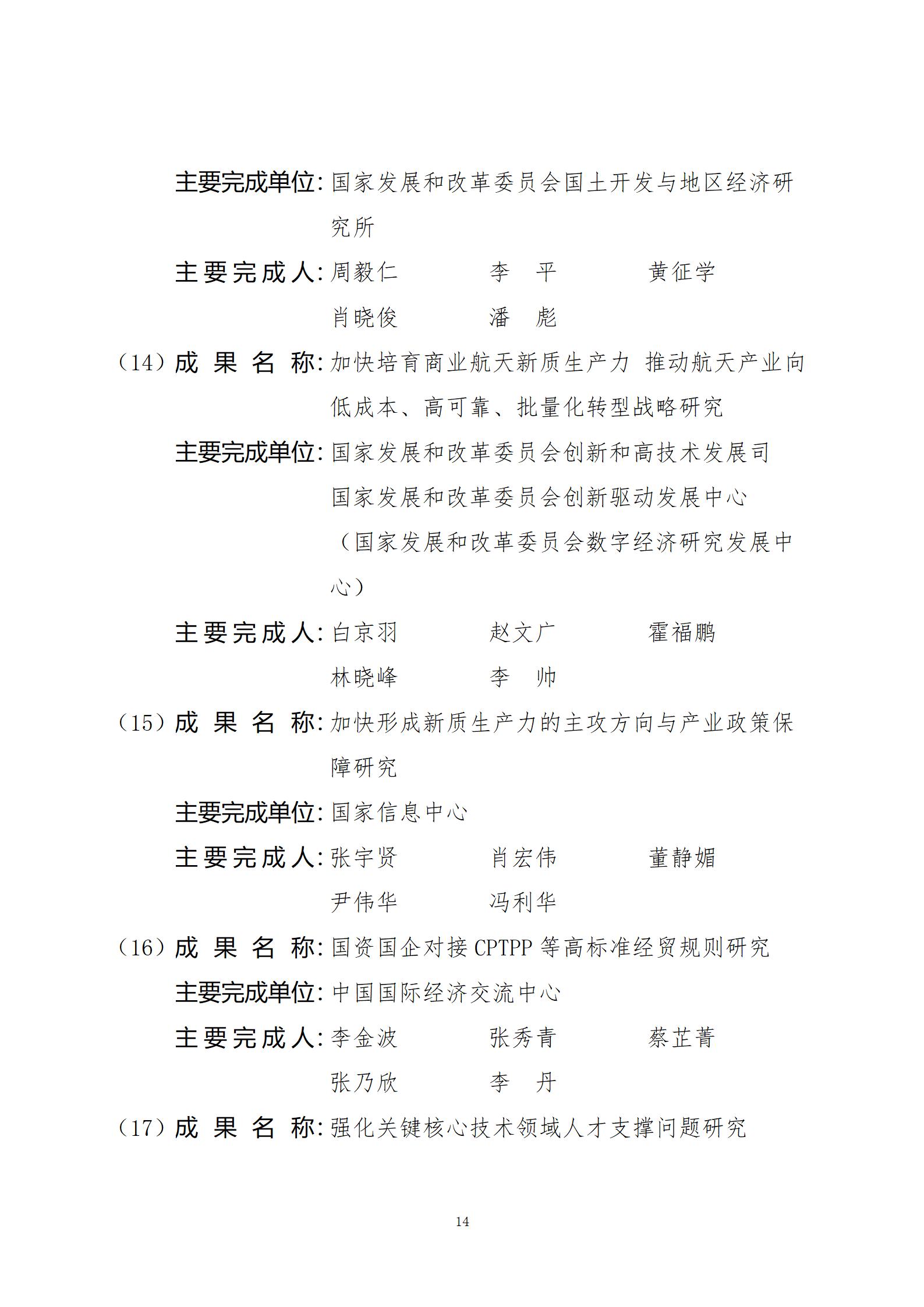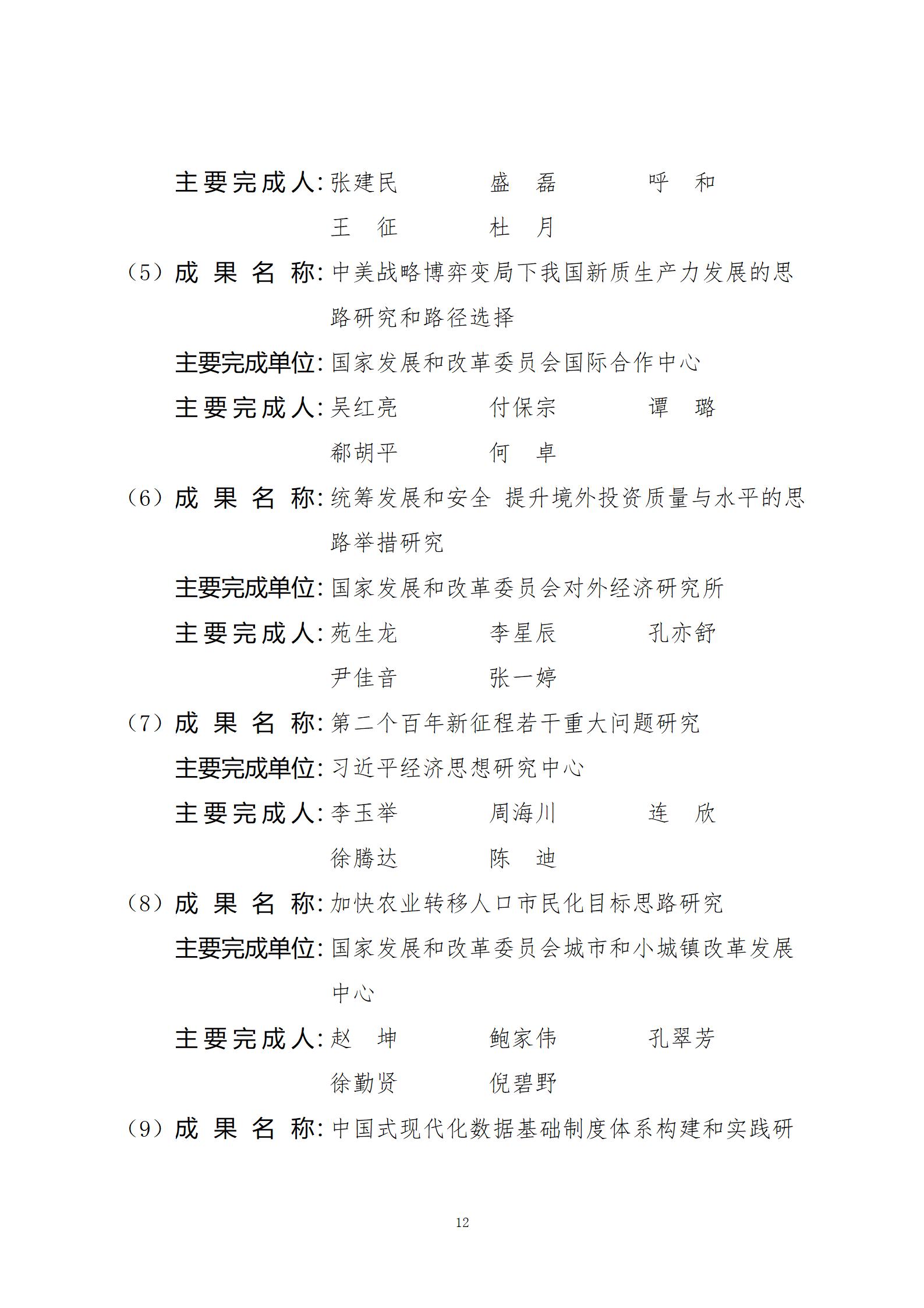 关于2024年度国家发展和改革委员会优秀研究成果获奖名单的公示