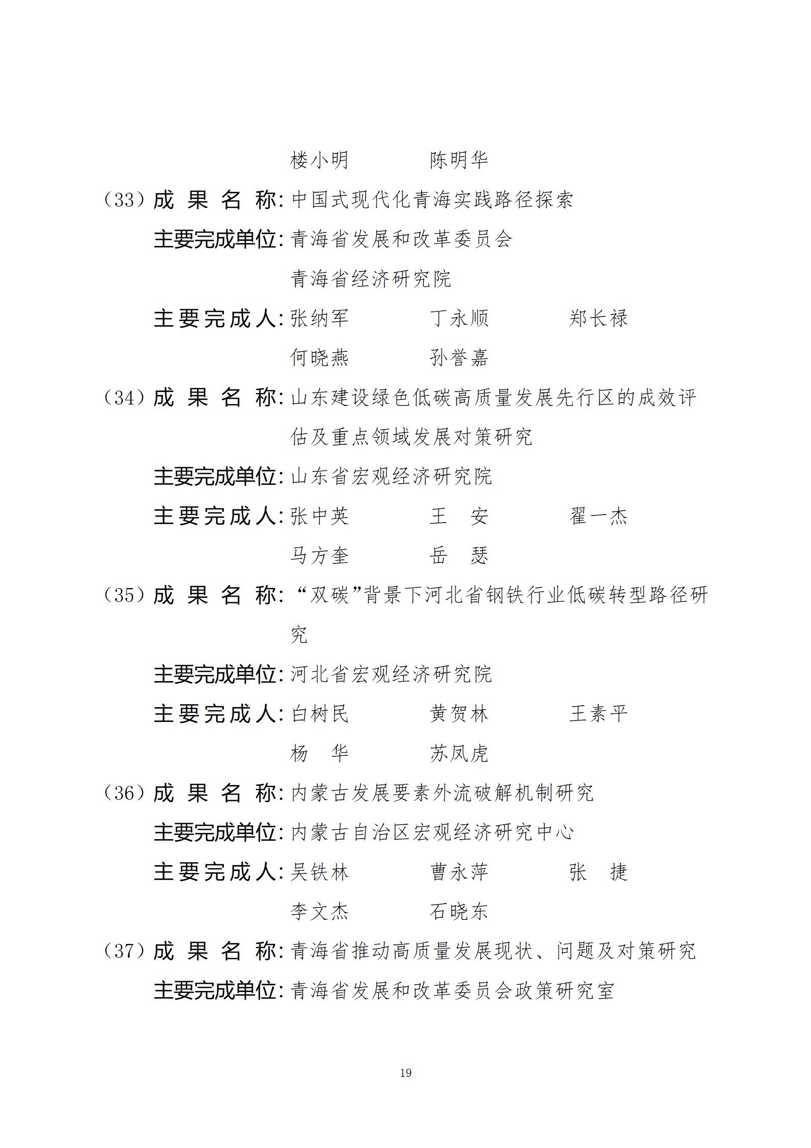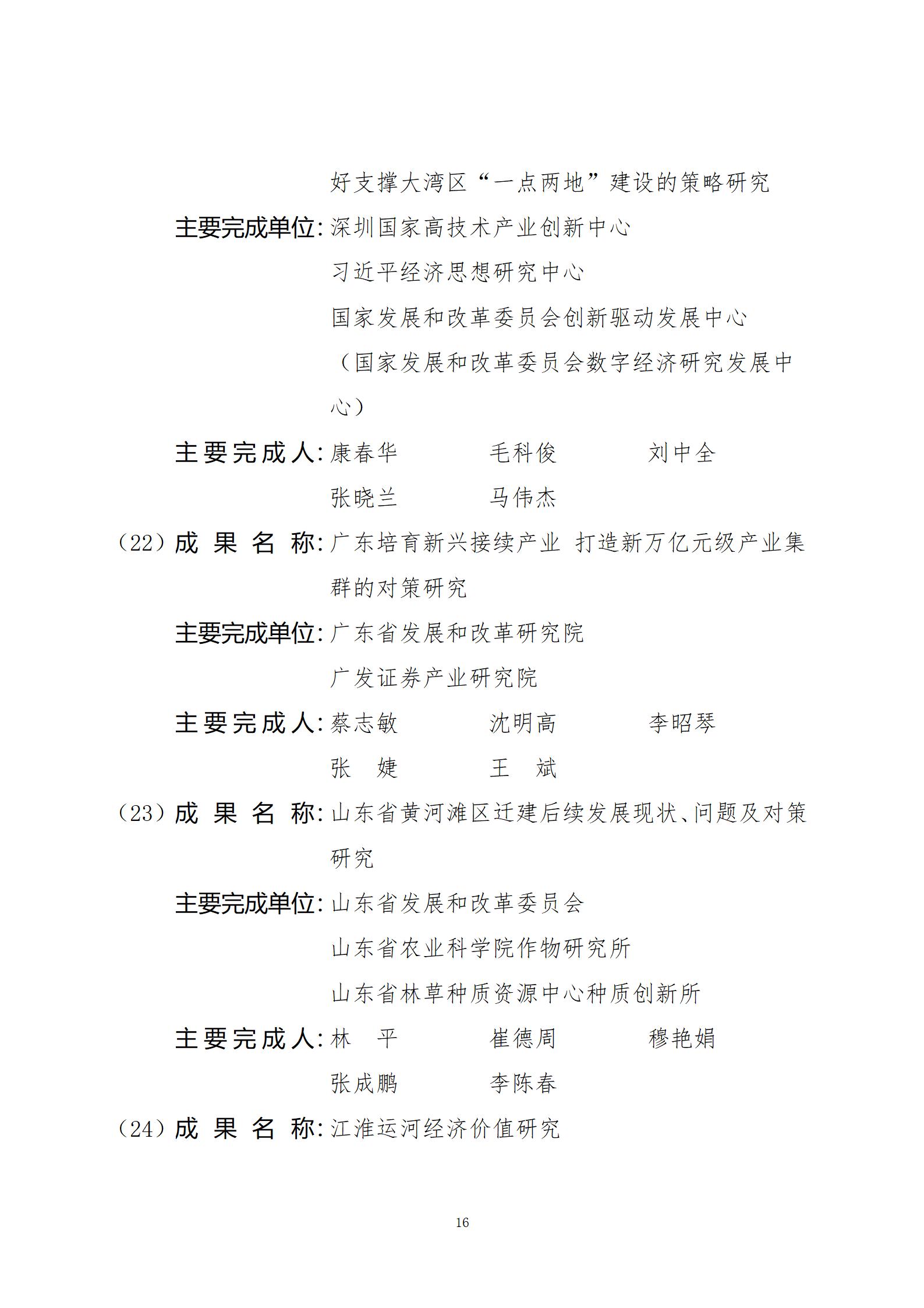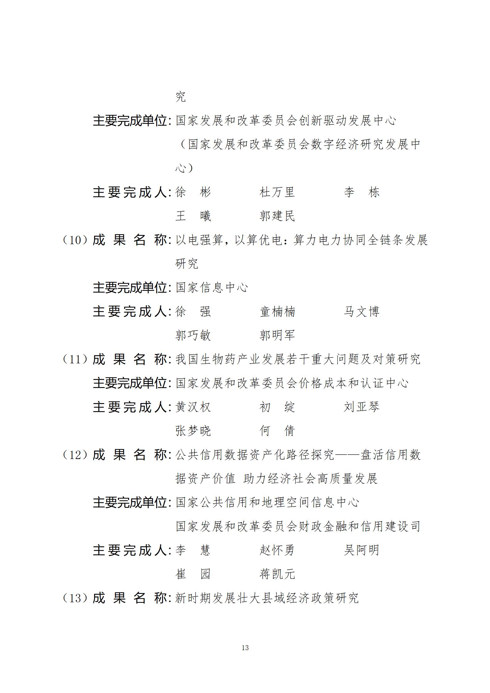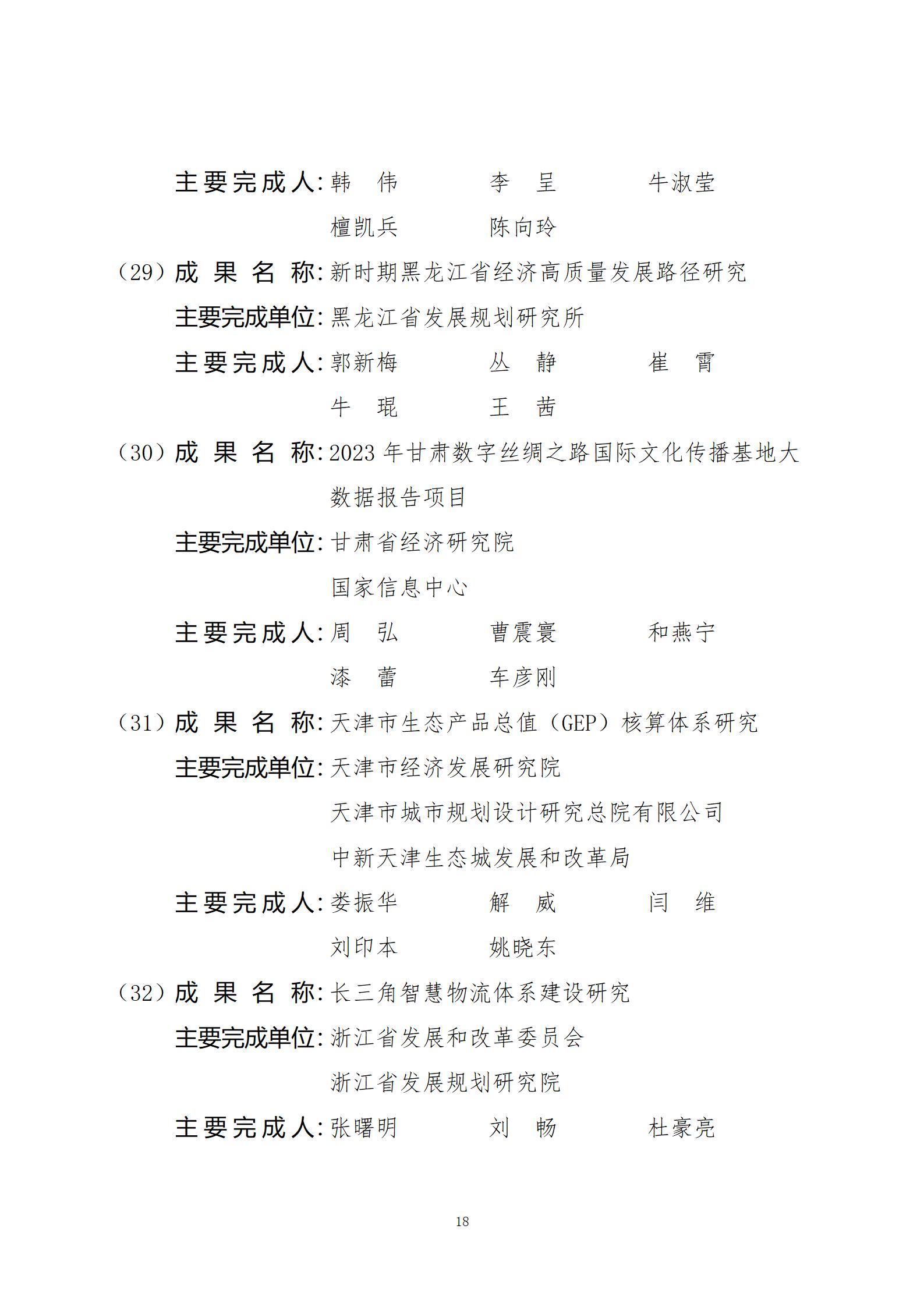 关于2024年度国家发展和改革委员会优秀研究成果获奖名单的公示