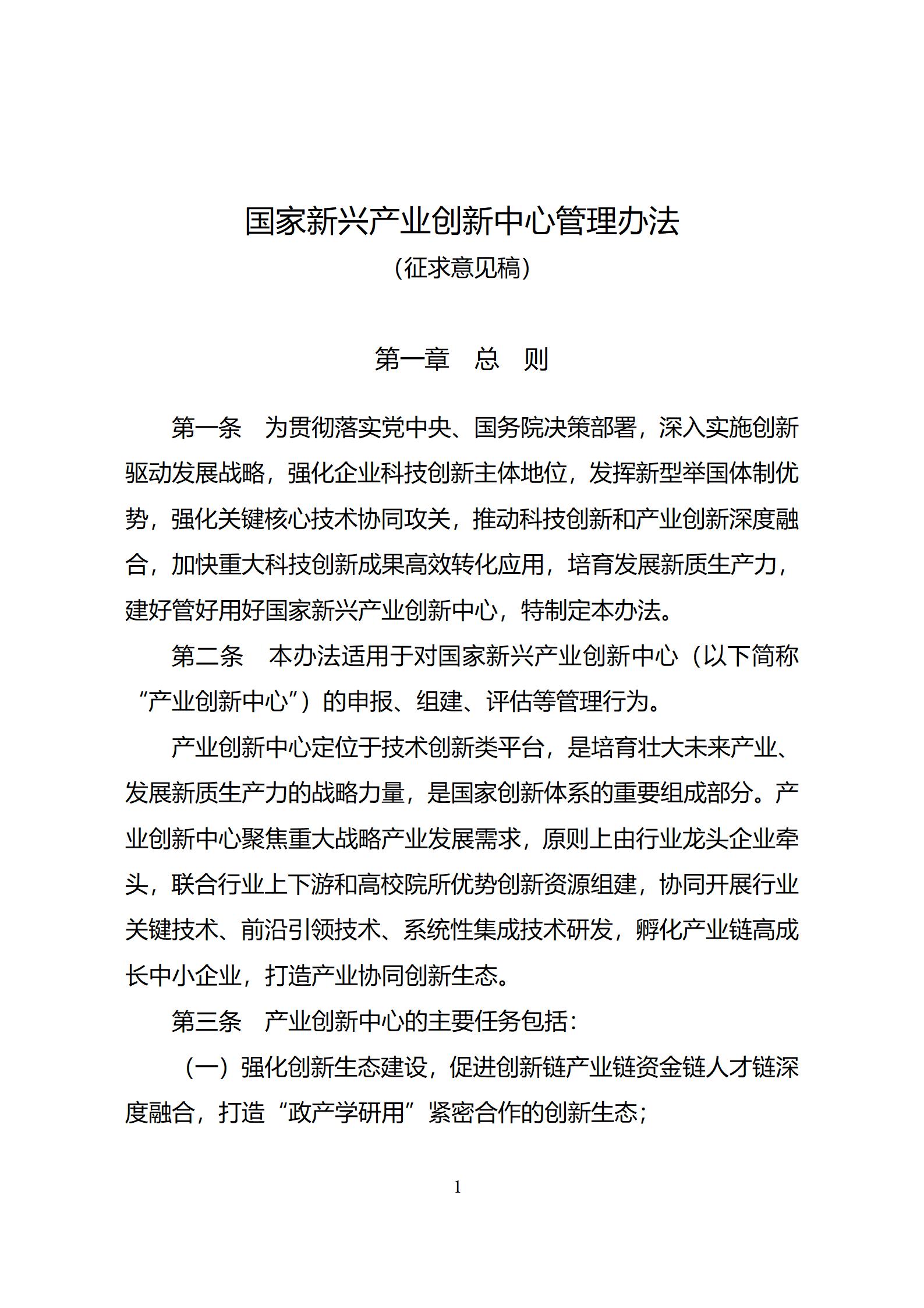 关于向社会公开征求《国家新兴产业创新中心管理办法(征求意见稿)》《国家产业技术工程化中心管理办法(征求意见稿)》意见的公告