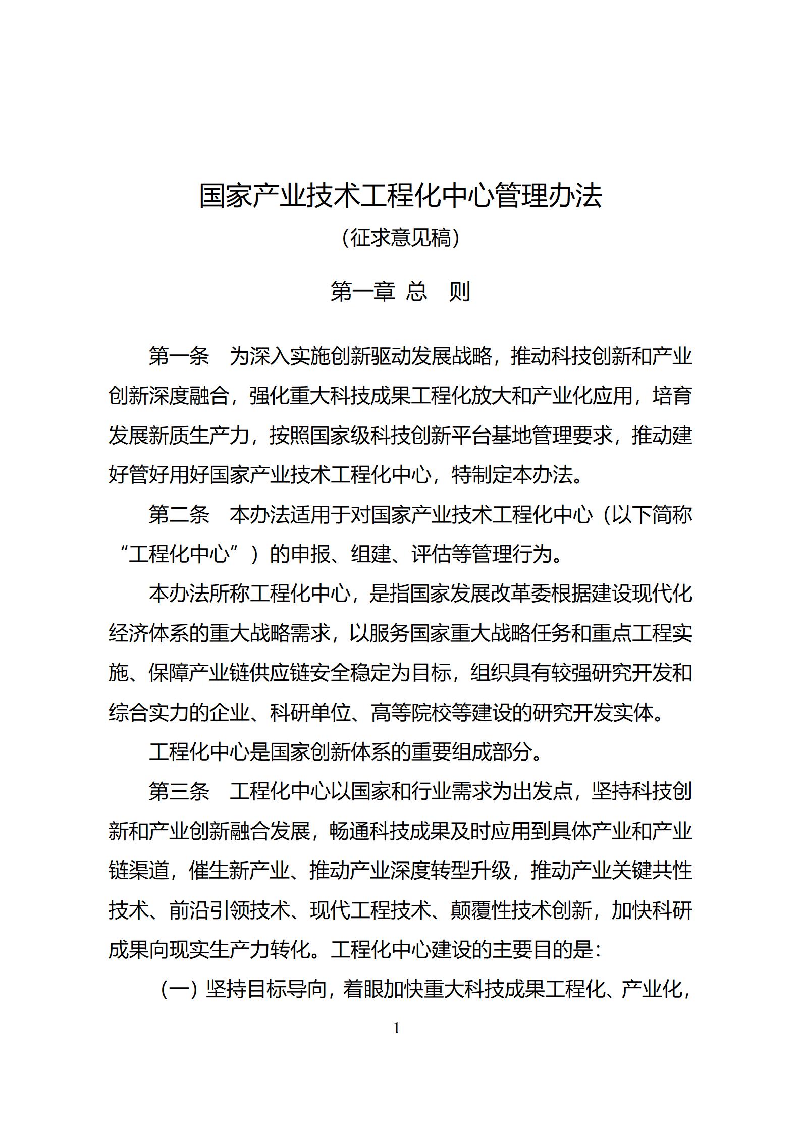国家发改委|《国家新兴产业创新中心管理办法(征求意见稿)》《国家产业技术工程化中心管理办法(征求意见稿)》