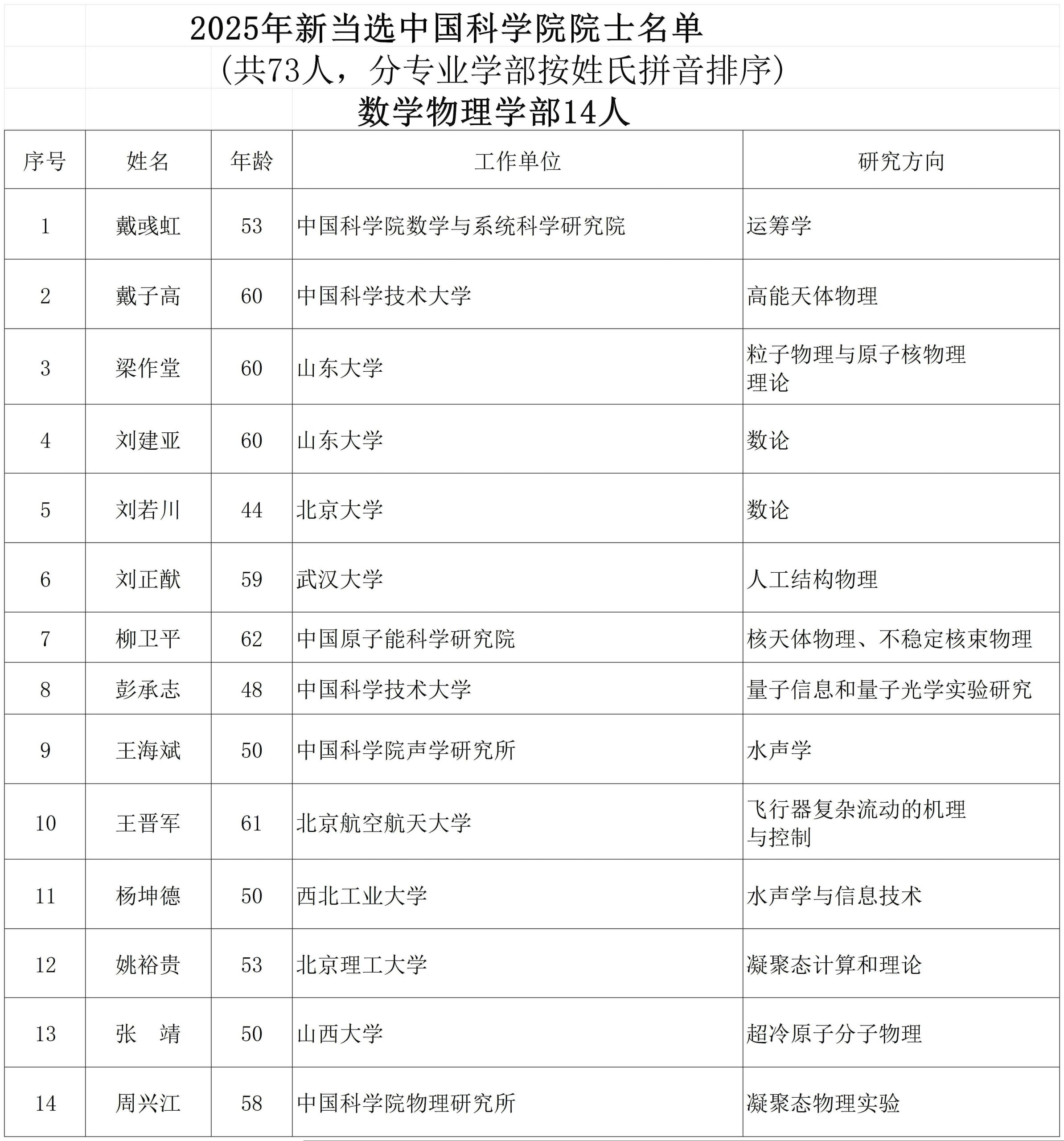 关于公布2025年中国科学院院士增选当选院士名单的公告
