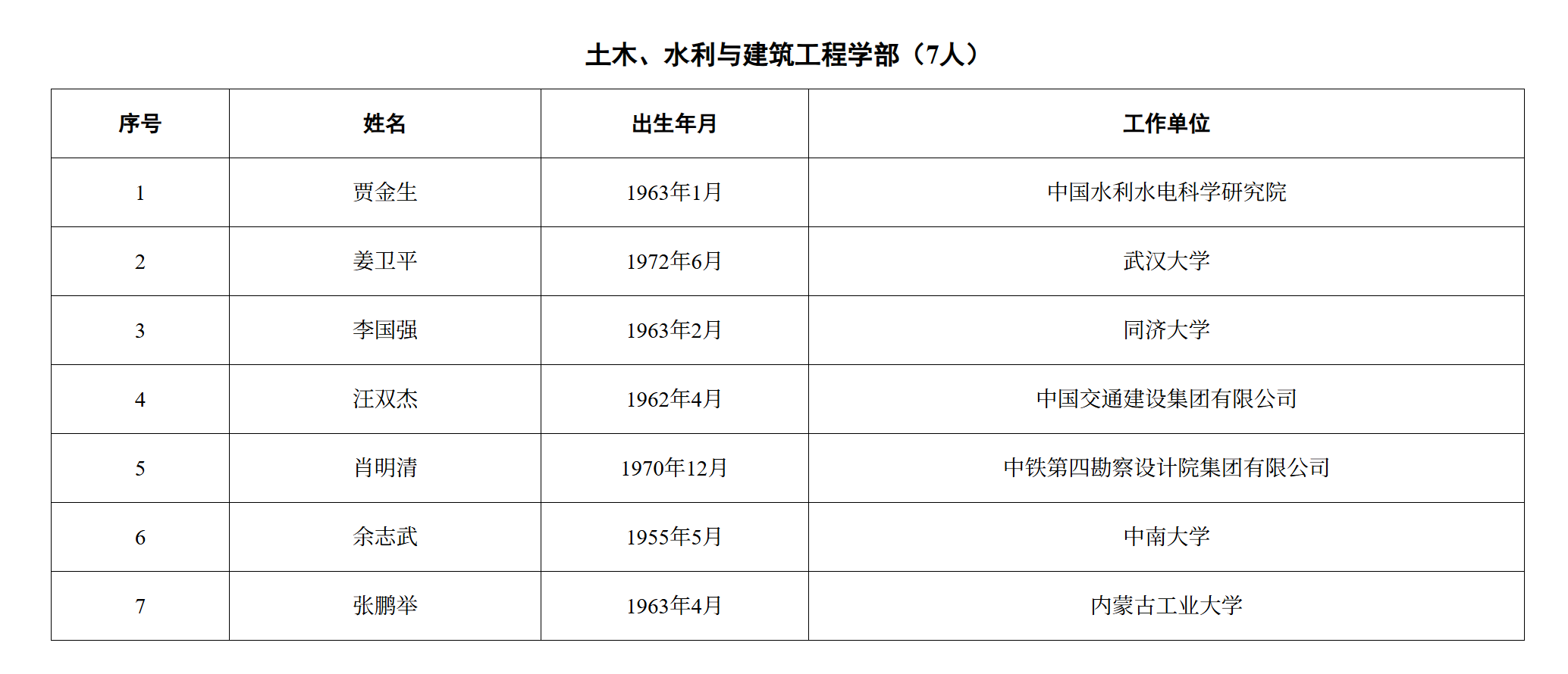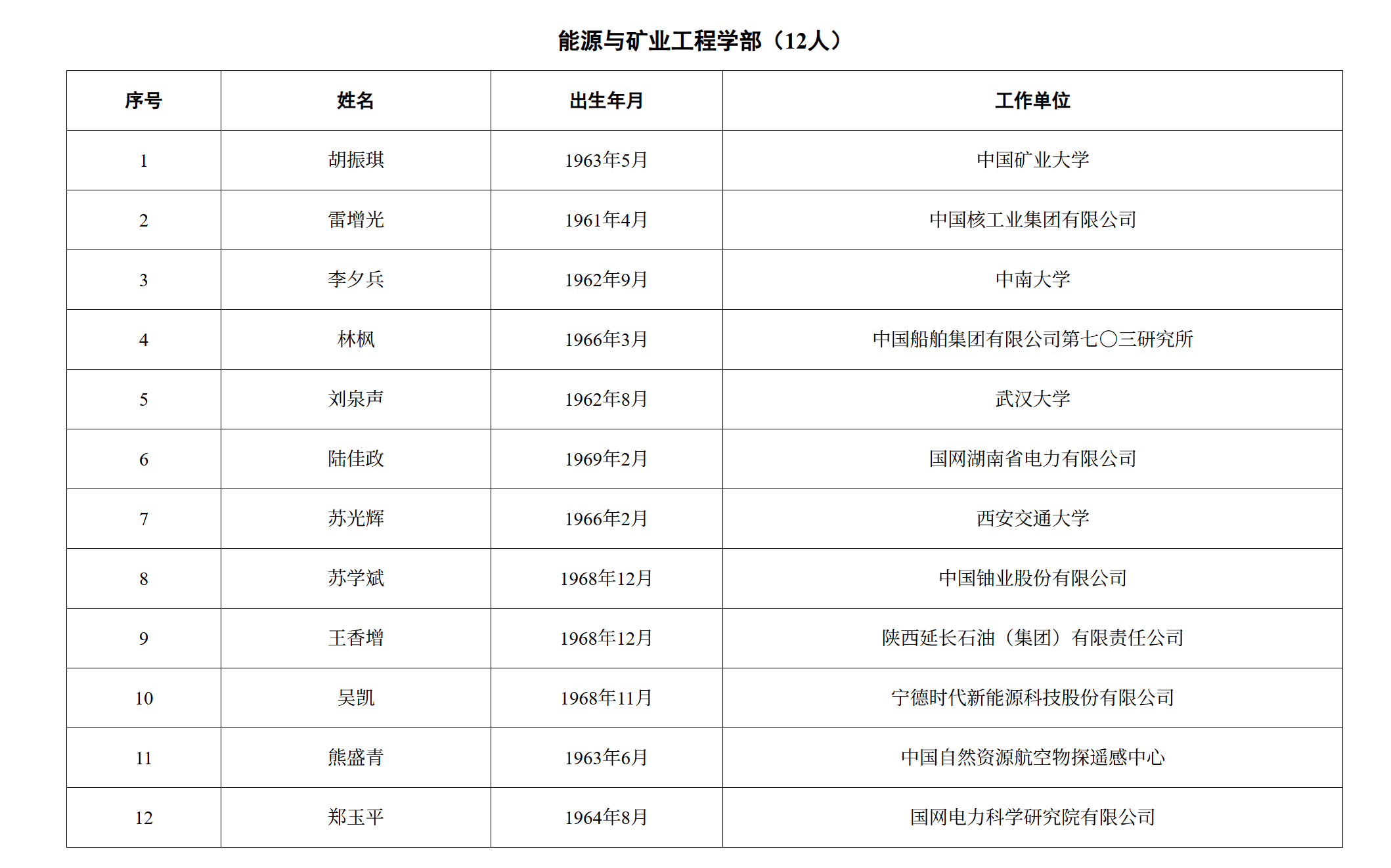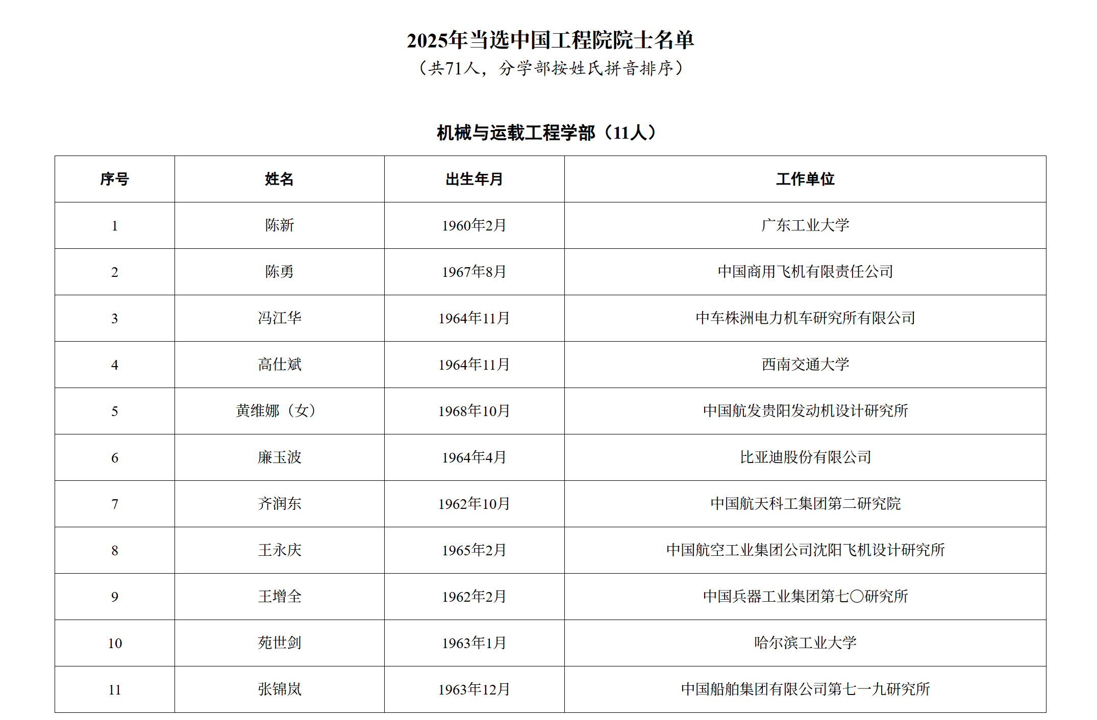 关于公布中国工程院2025年院士增选当选院士名单的公告