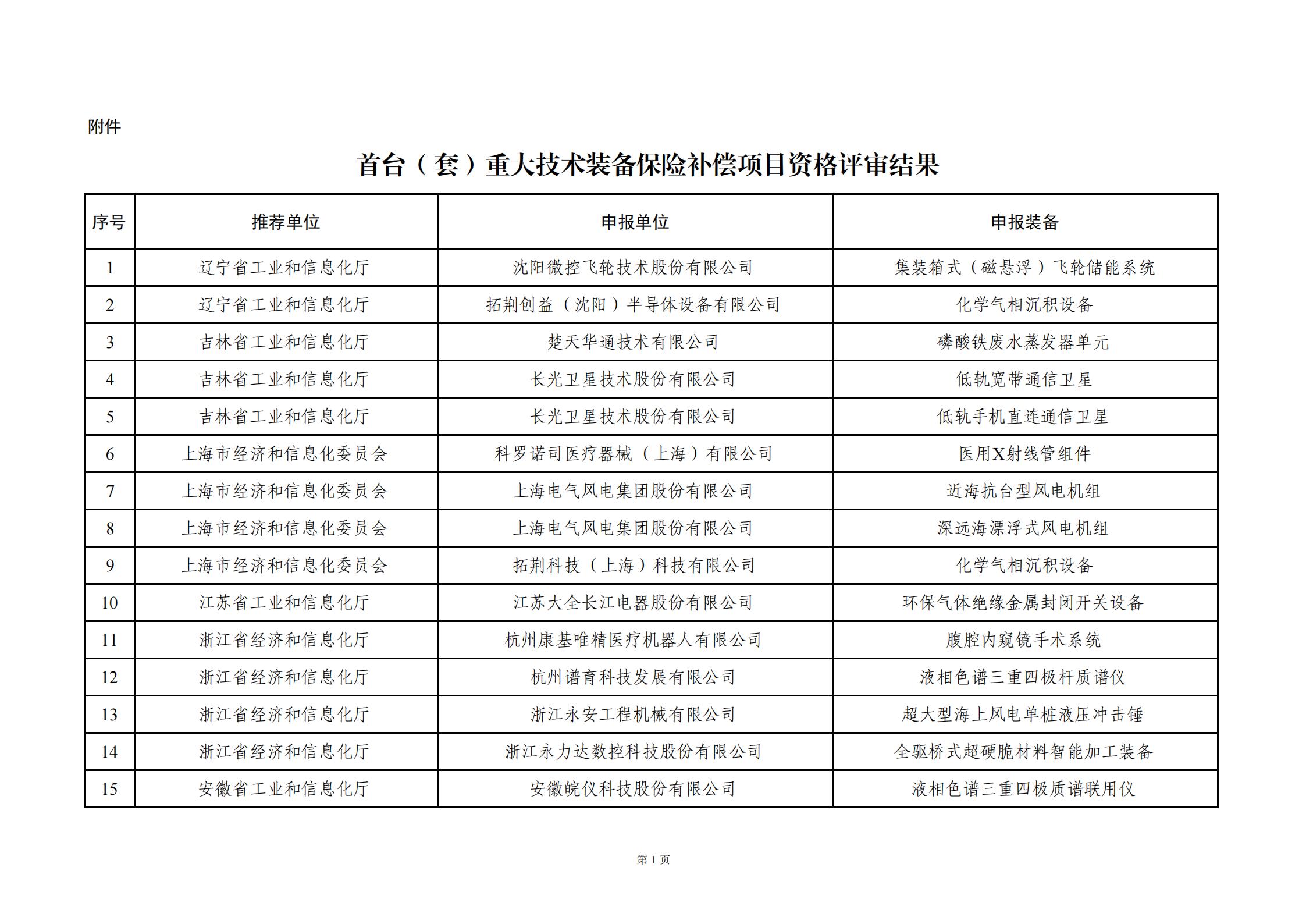 附件:首台(套)重大技术装备保险补偿项目资格评审结果