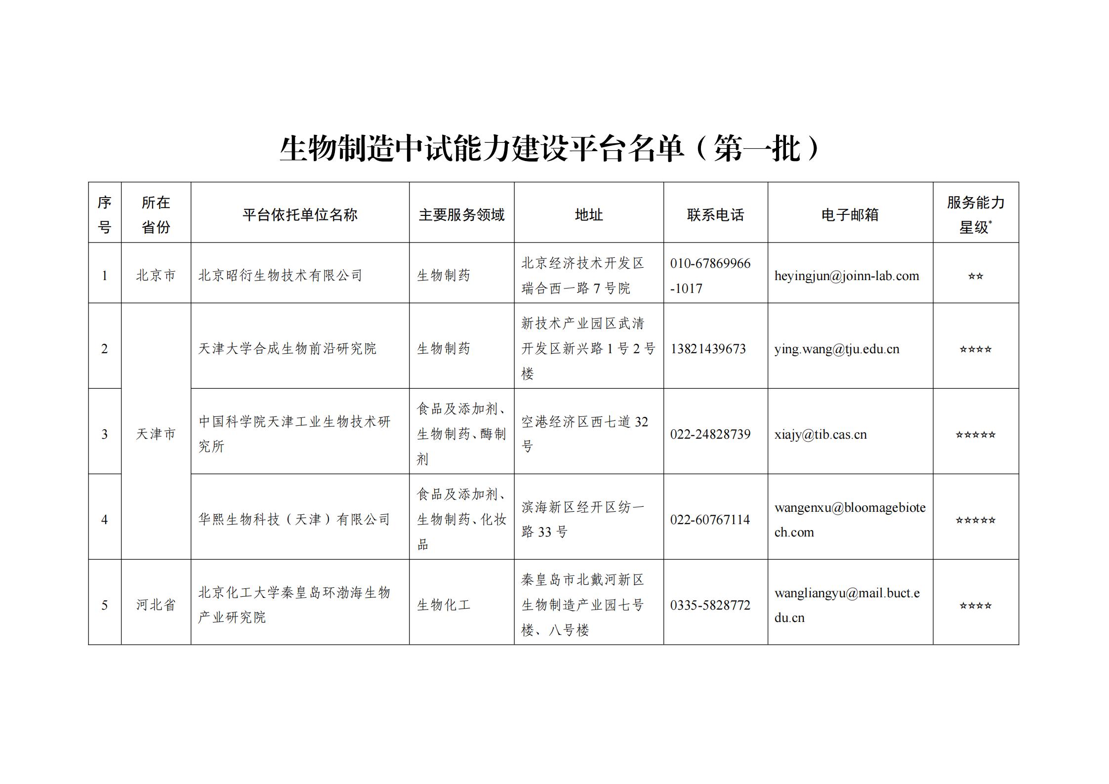 工业和信息化部办公厅关于印发生物制造中试能力建设平台名单(第一批)的通知