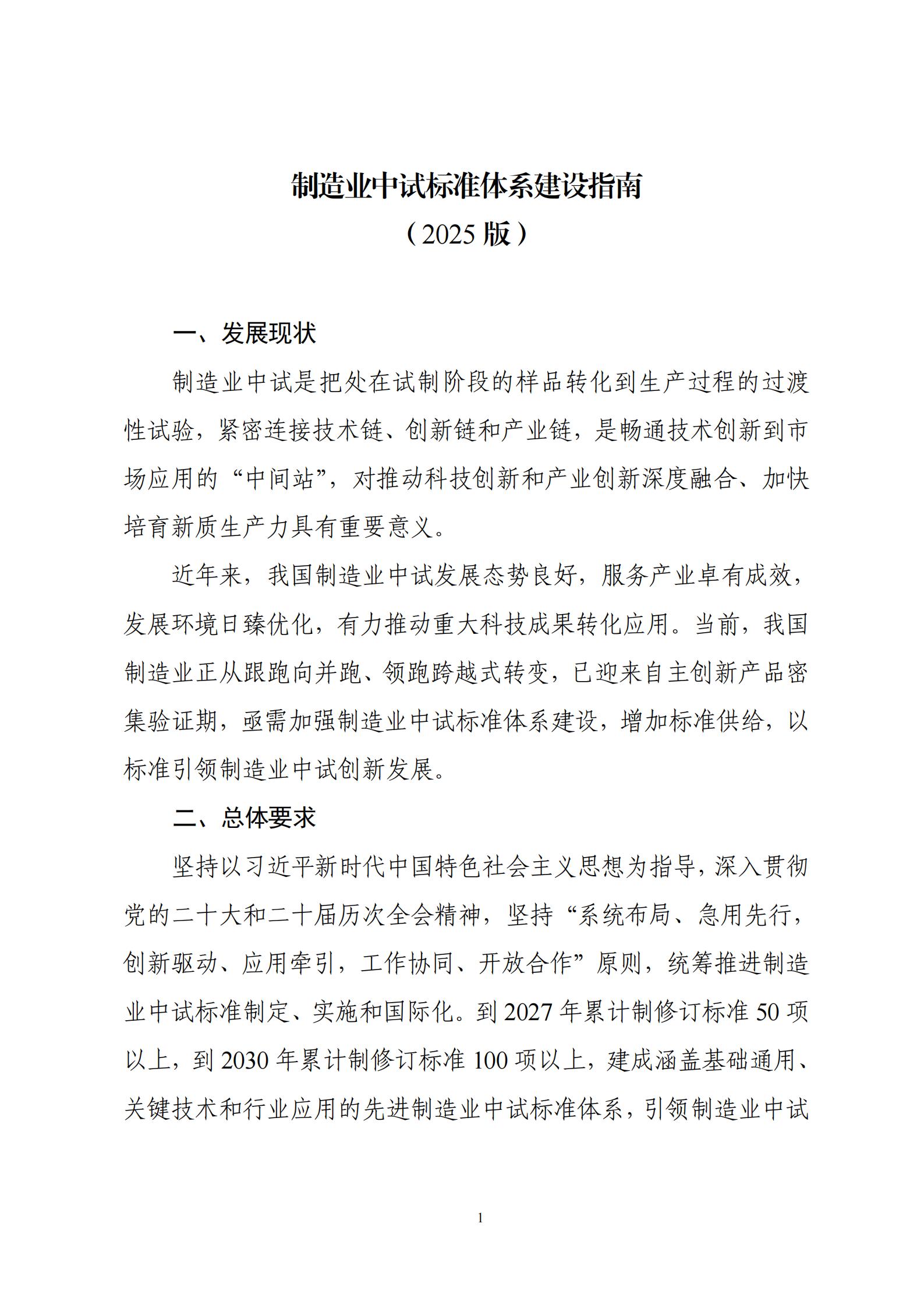 现将《制造业中试标准体系建设指南(2025版)》印发给你们,请结合实际抓好实施。