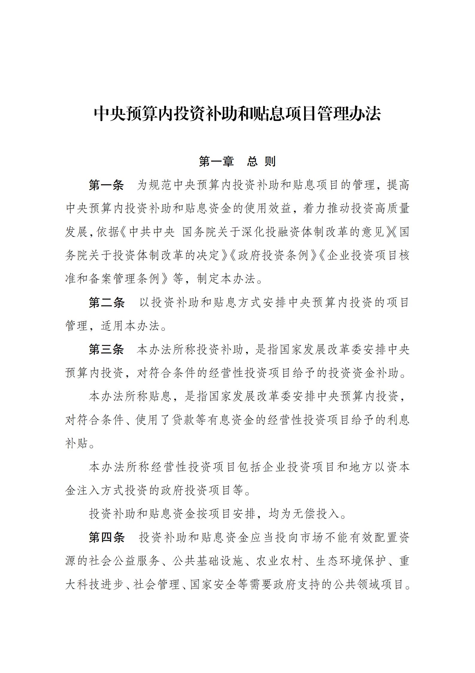 《中央预算内投资补助和贴息项目管理办法》 2025年第38号令