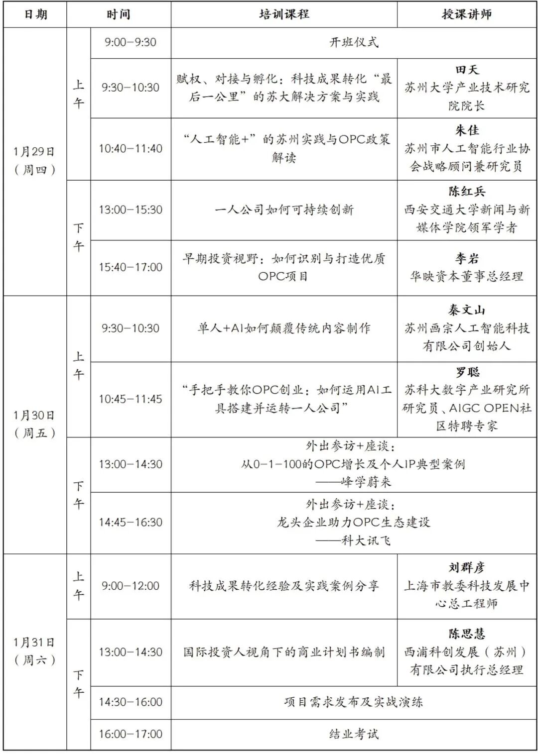 培训时间: 2026年1月29日-31日(周四-周六)