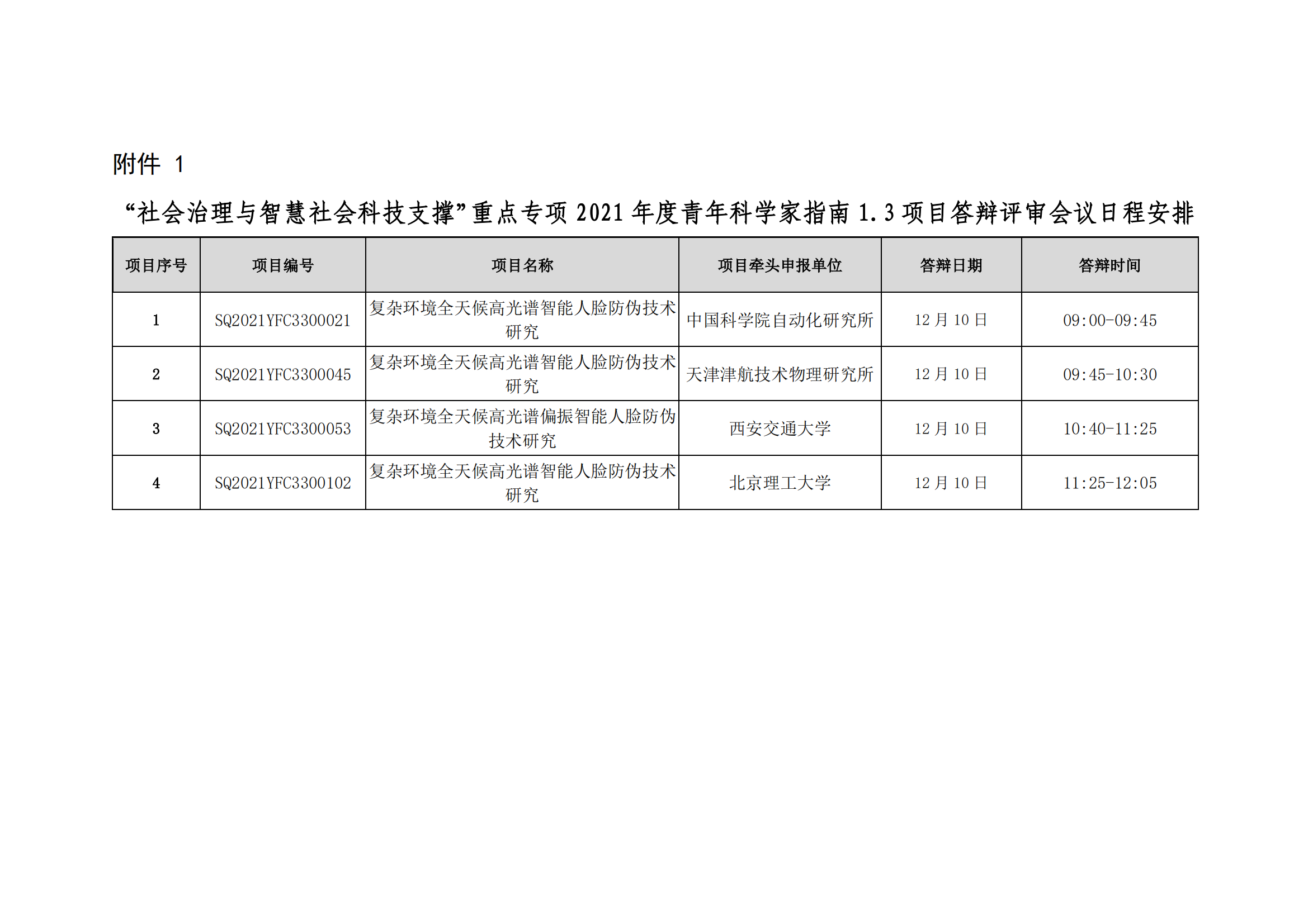 1.“社会治理与智慧社会科技支撑”重点专项2021年度青年科学家指南1.3项目答辩评审会议日程安排