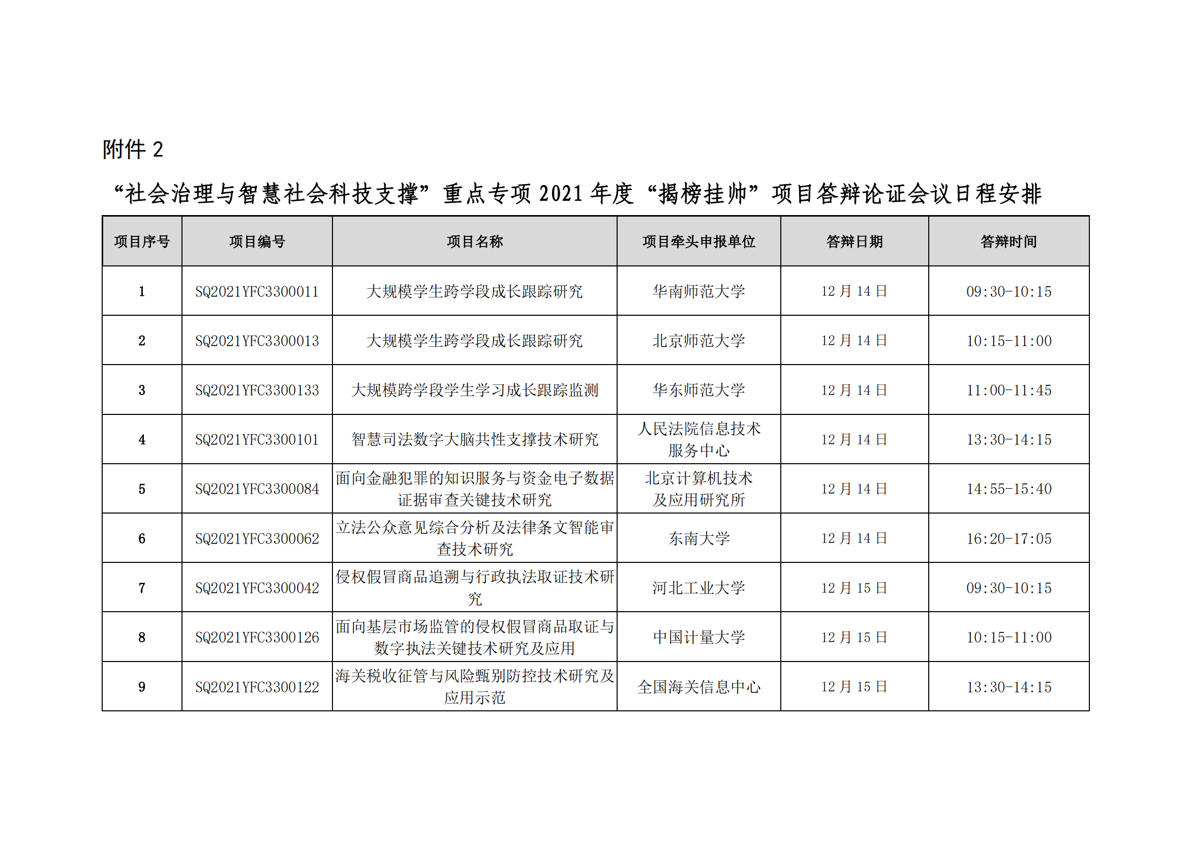 2.“社会治理与智慧社会科技支撑”重点专项2021年度“揭榜挂帅”项目答辩论证会议日程安排