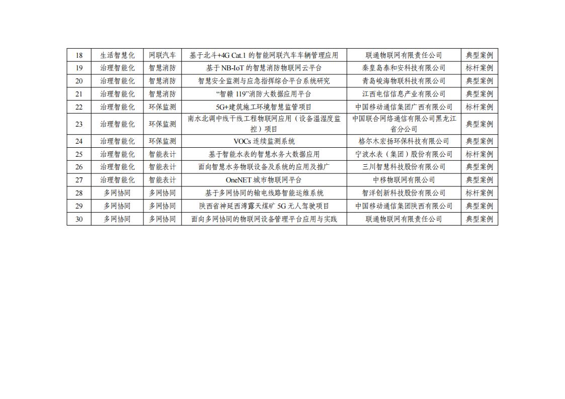 移动物联网应用典型案例名单(第二批)公示