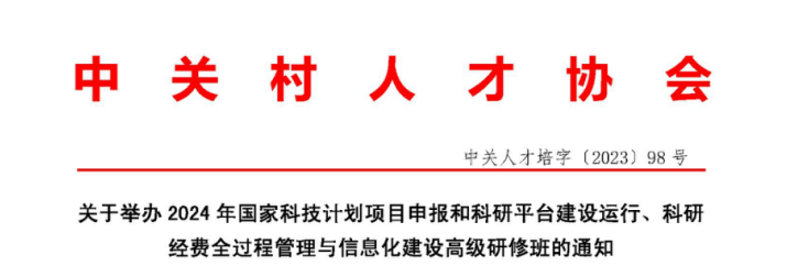 关于举办2024年国家科技计划项目申报和科研平台建设运行、科研经费全过程管理与信息化建设高级研修班的通知