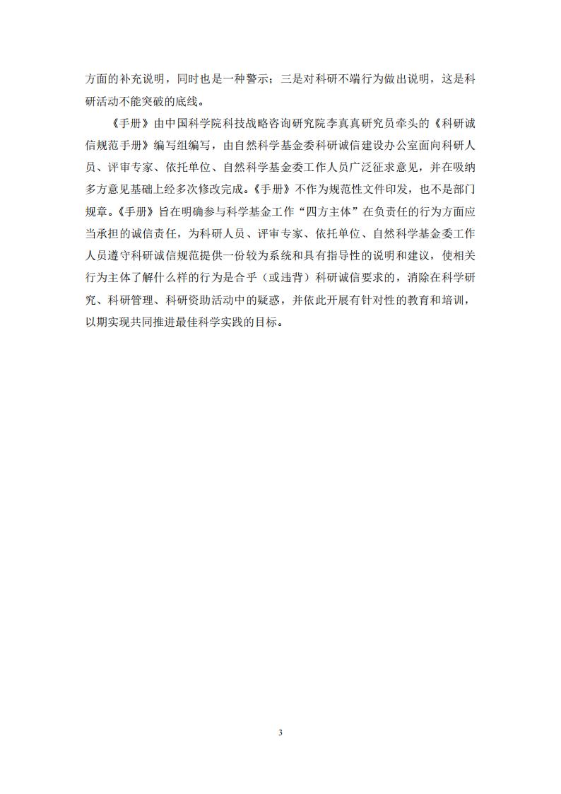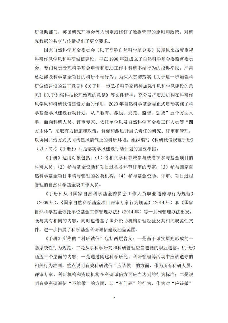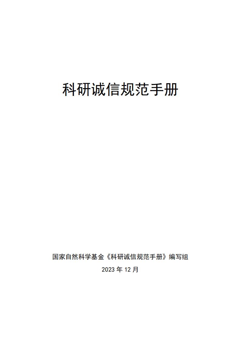 国家自然科学基金委|关于发布《科研诚信规范手册》的通知