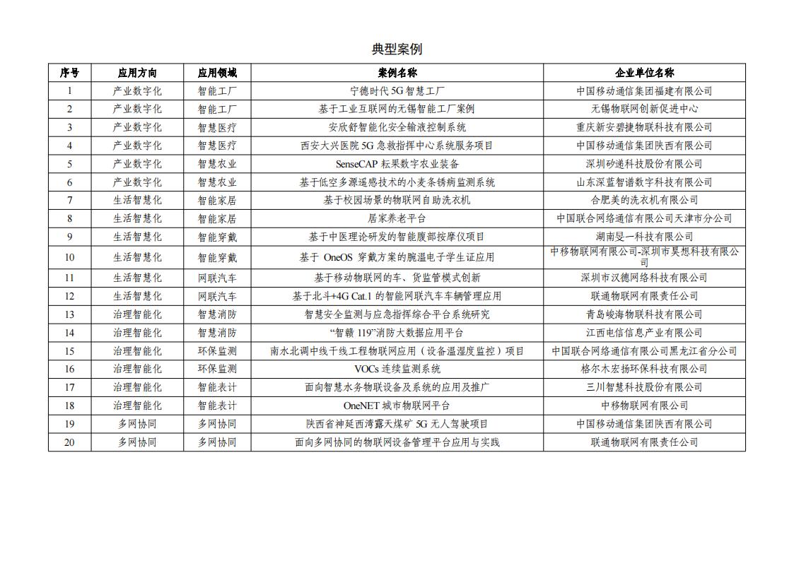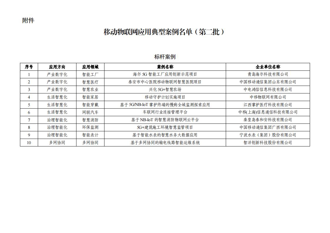 工业和信息化部办公厅关于公布移动物联网应用典型案例名单(第二批)的通知