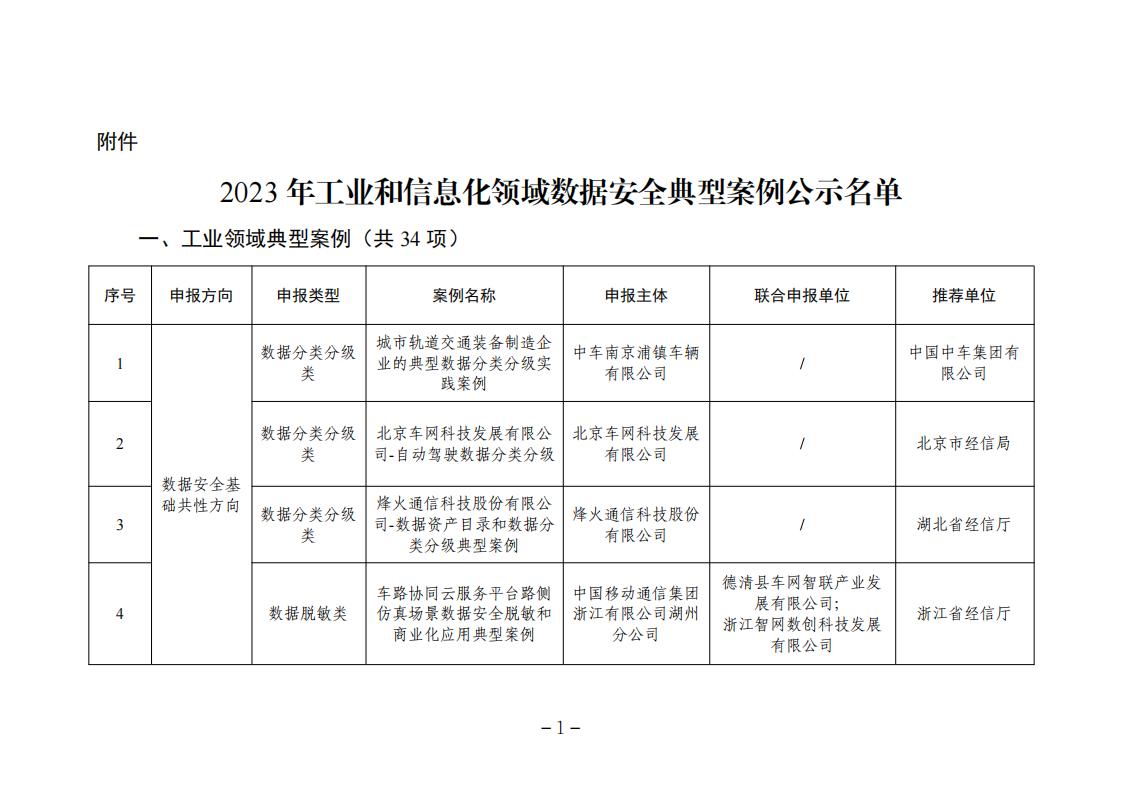 附件:2023年工业和信息化领域数据安全典型案例公示名单