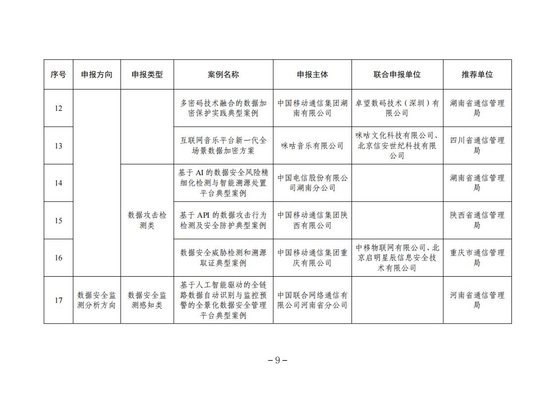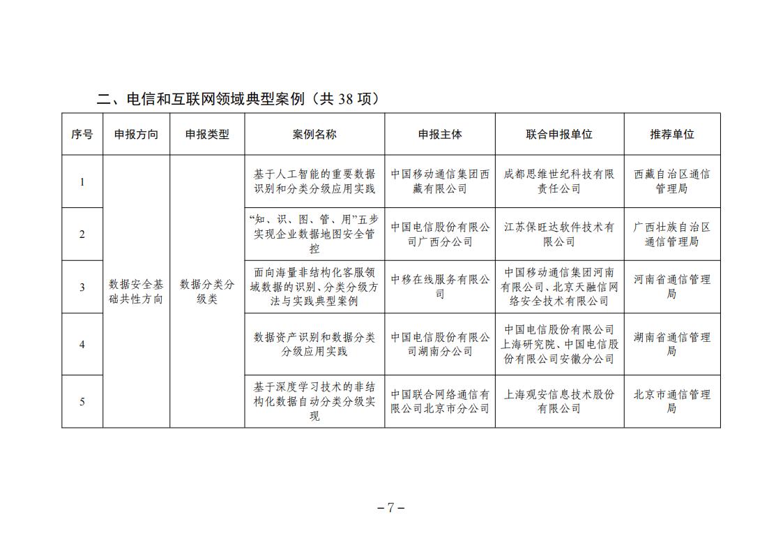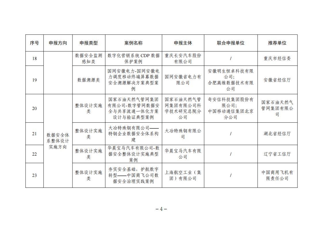 关于2023年工业和信息化领域数据安全典型案例名单的公示