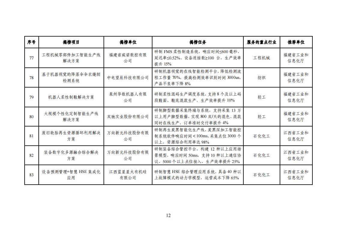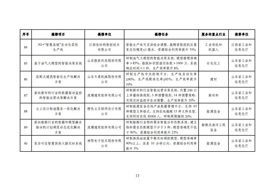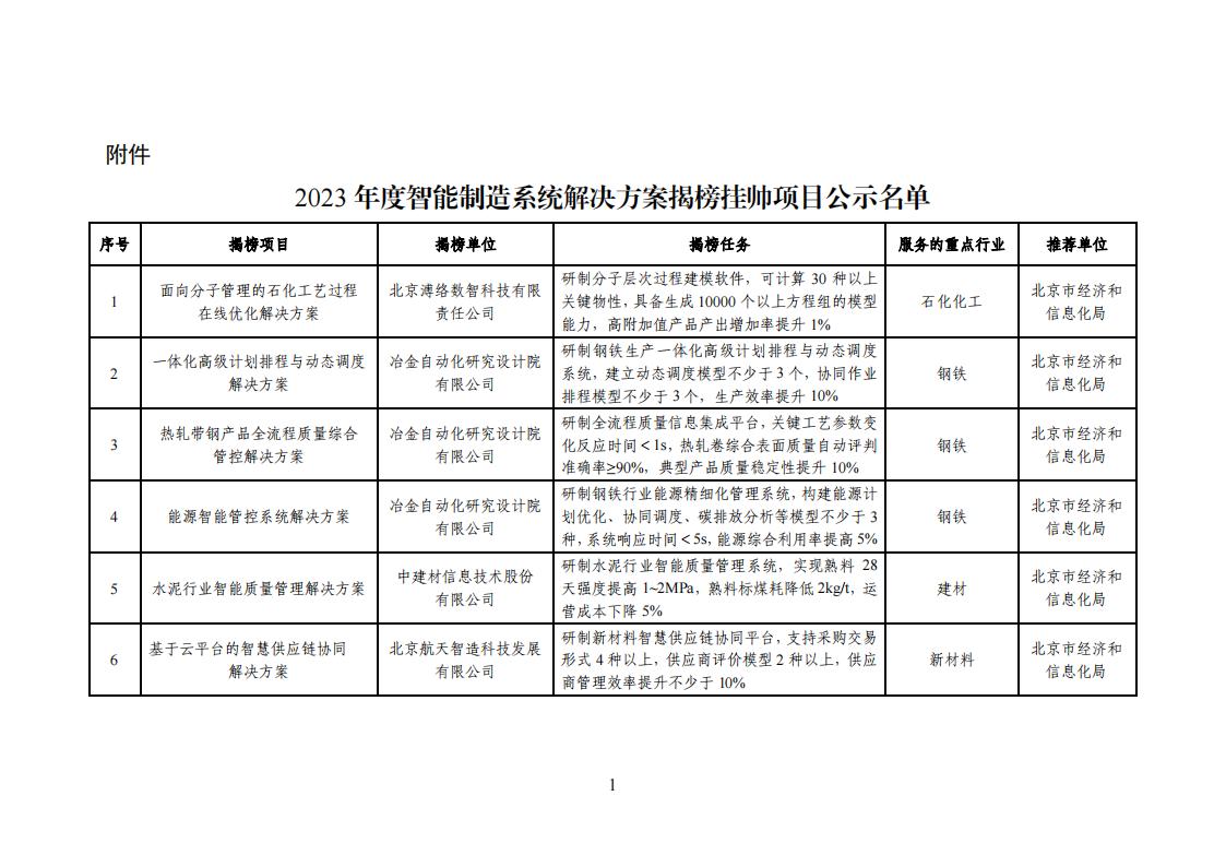 关于2023年度智能制造系统解决方案揭榜挂帅项目的公示