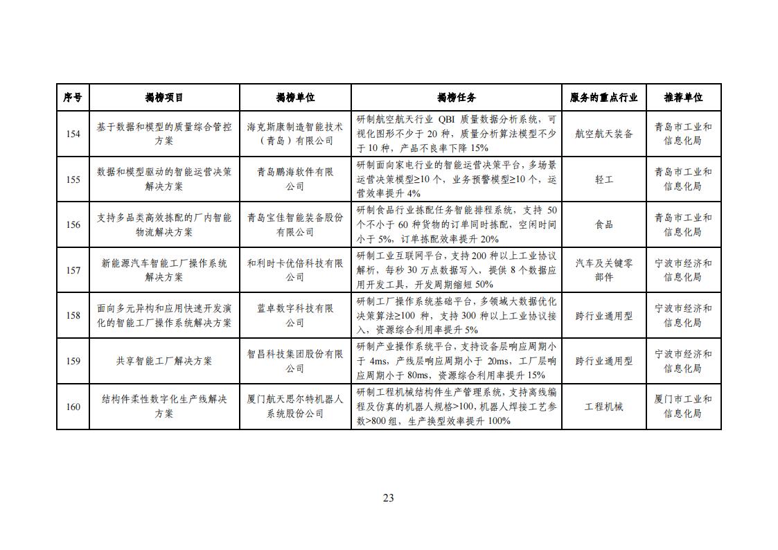 工信部|2023年度智能制造系统解决方案揭榜挂帅项目公示