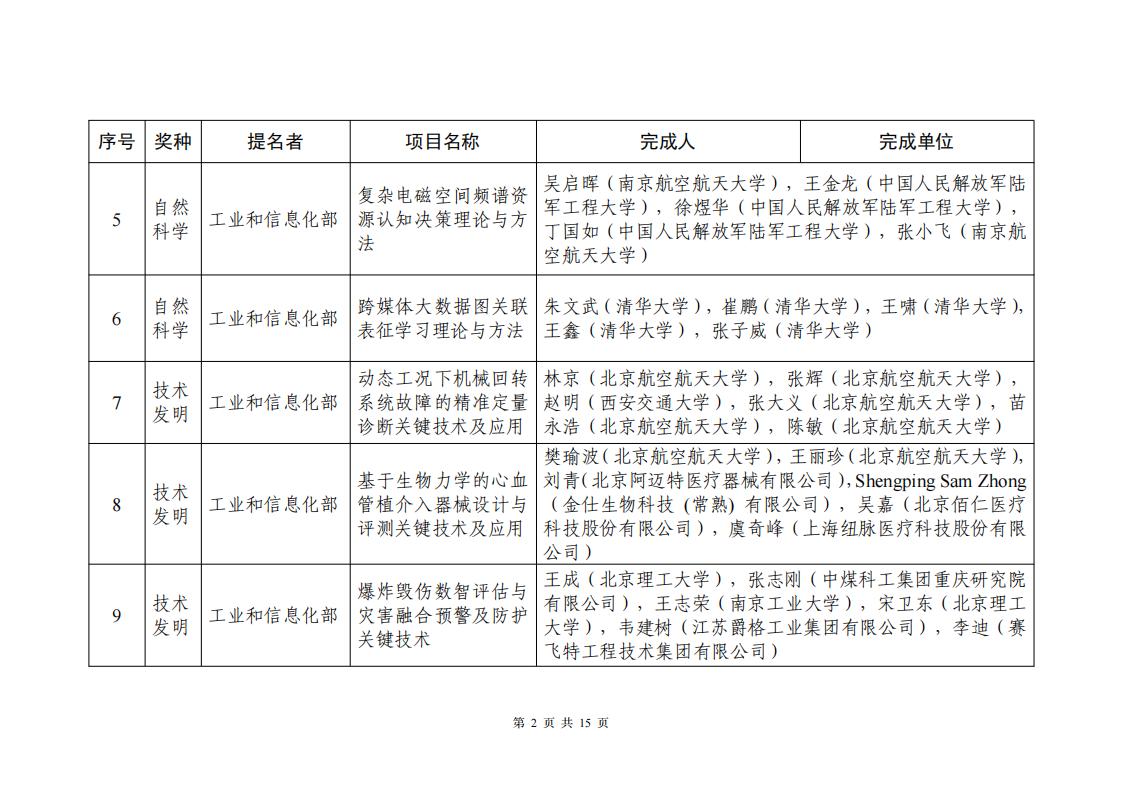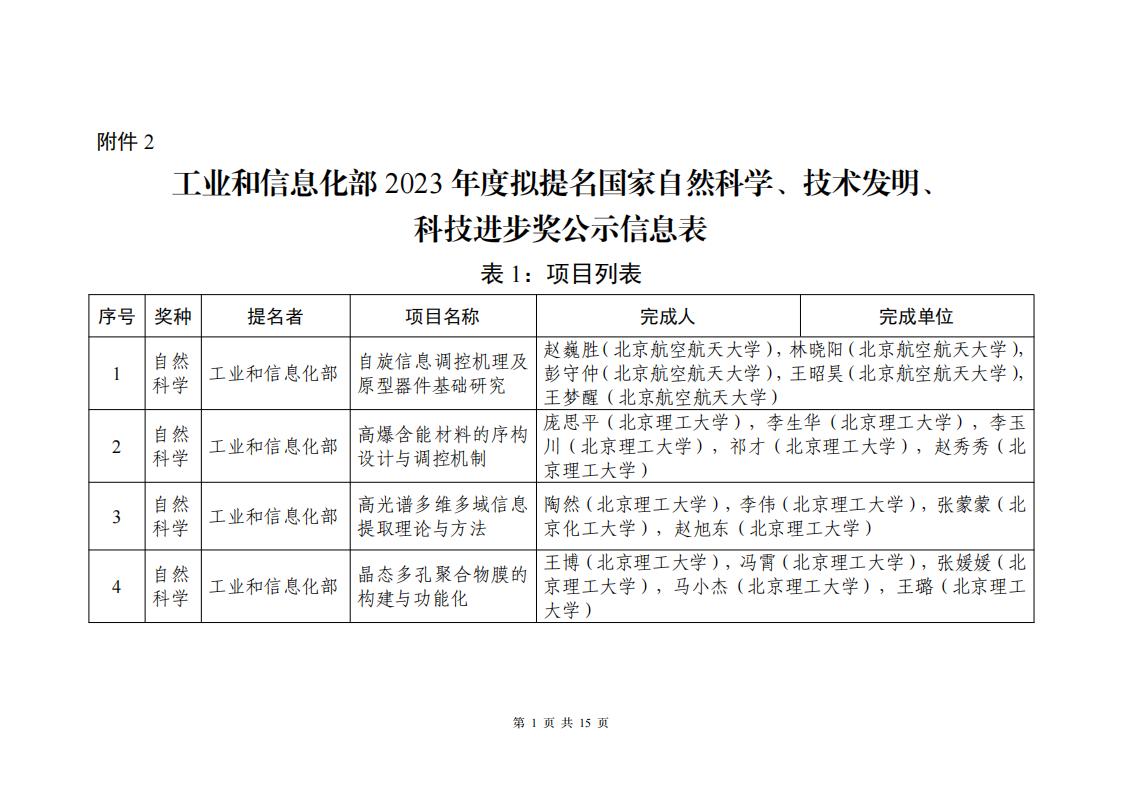 2.工业和信息化部2023年度拟提名国家自然科学、技术发明、科技进步奖公示信息表