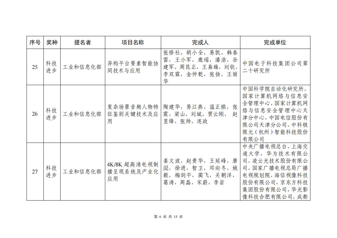 工信部|关于提名2023年度国家科学技术奖候选人和候选项目的公示