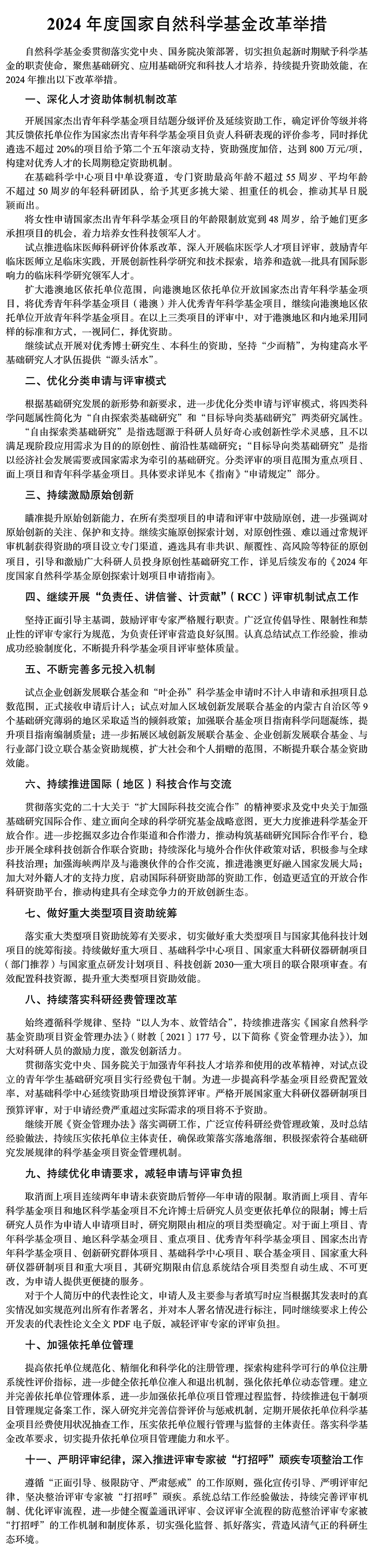 2024年度国家自然科学基金改革举措-节选自《2024年度国家自然科学基金项目指南》