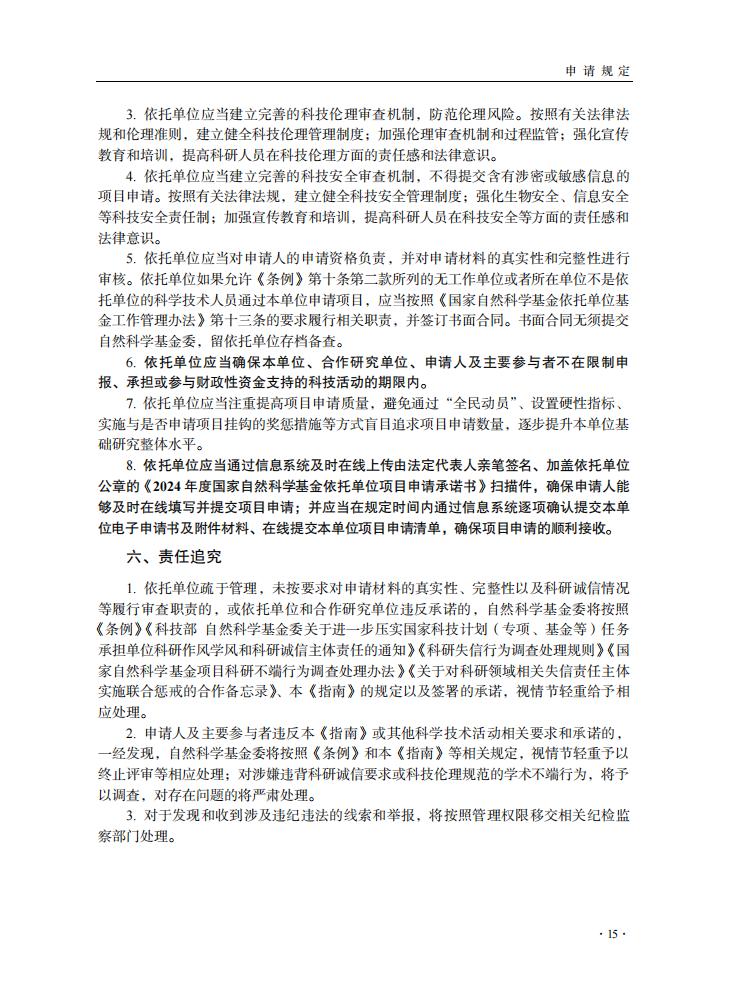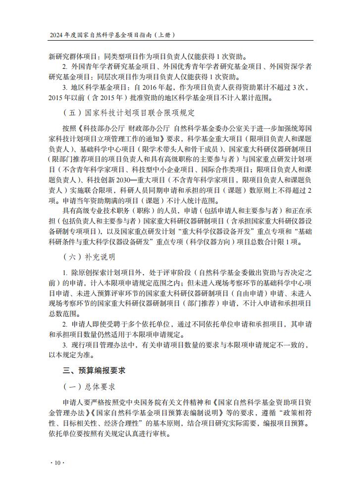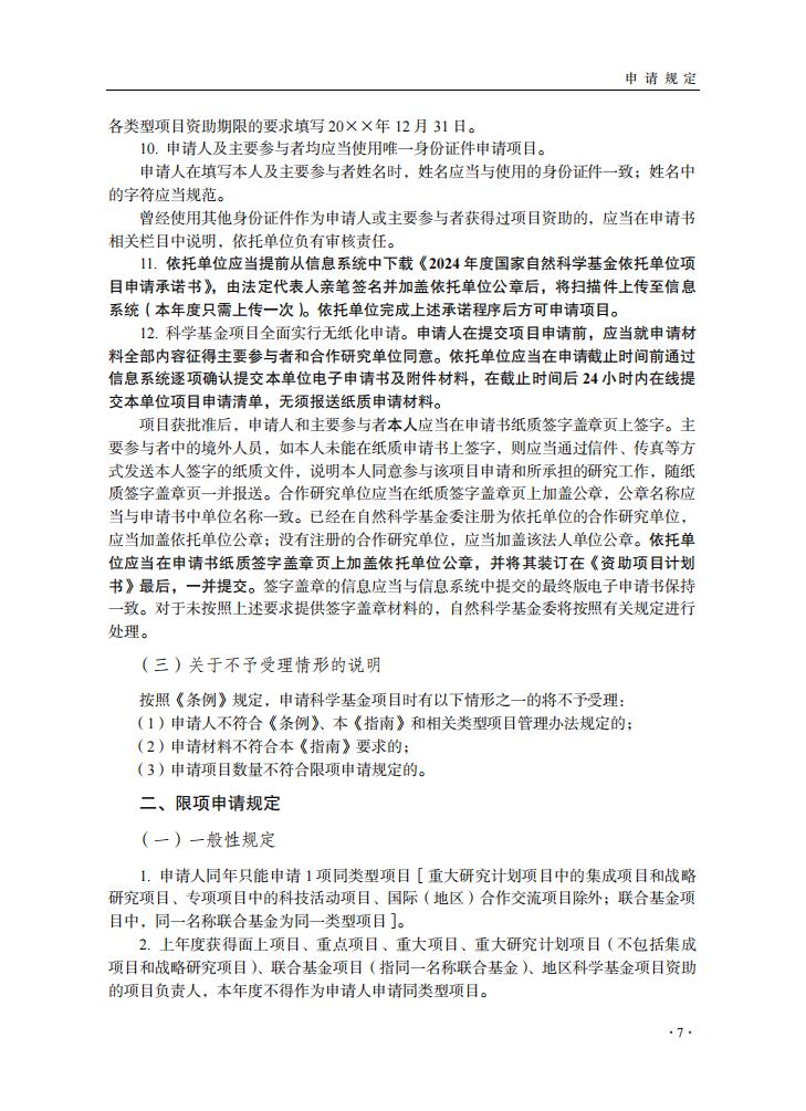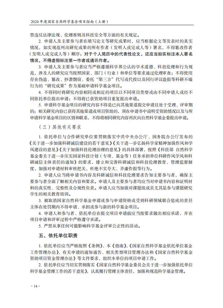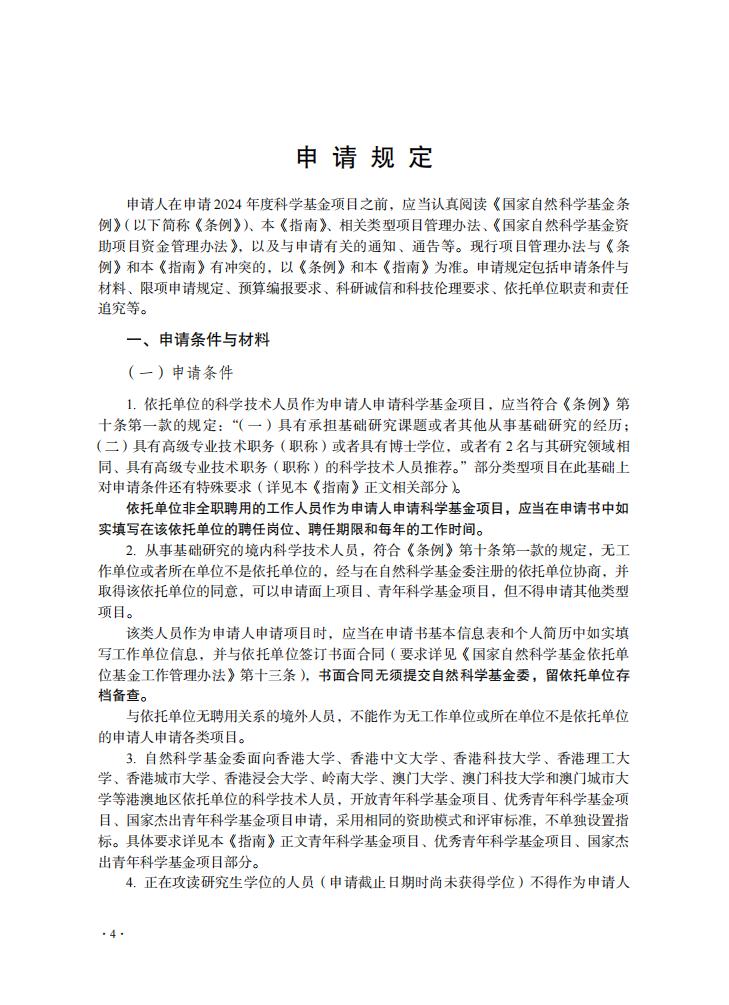 申请规定-节选自《2024年度国家自然科学基金项目指南》