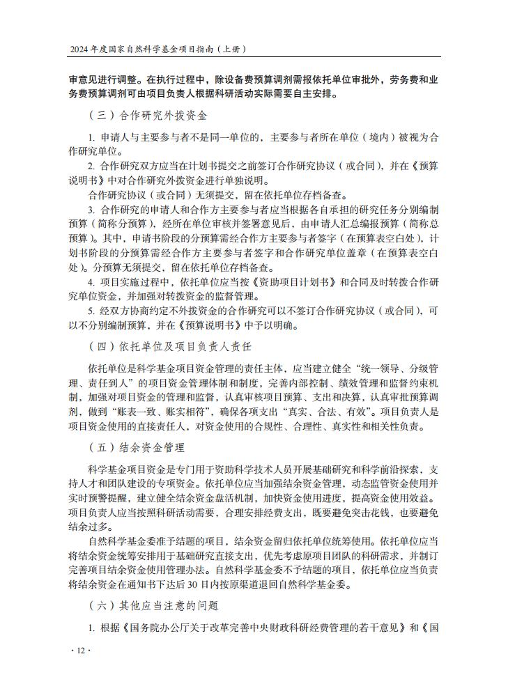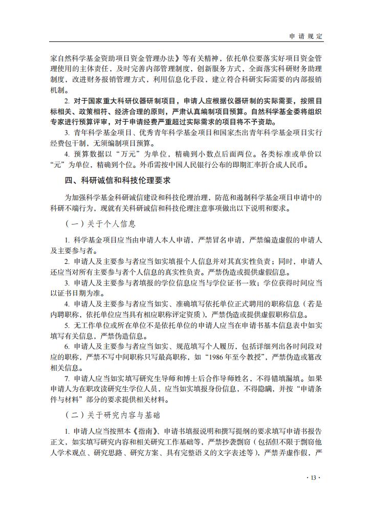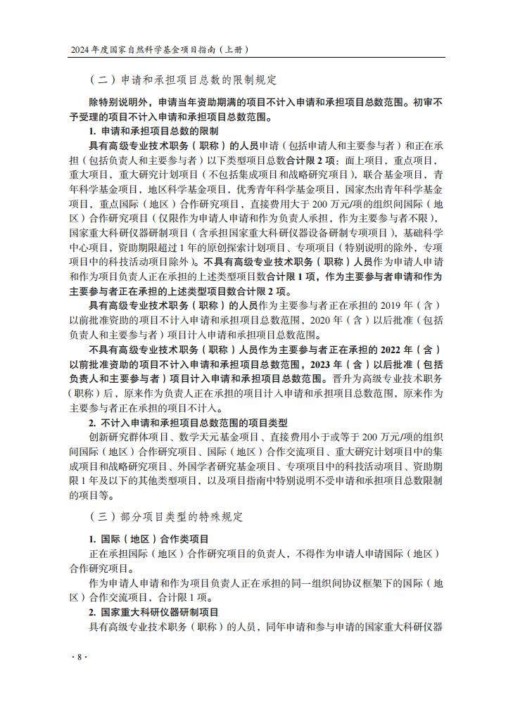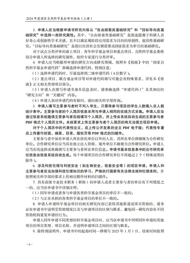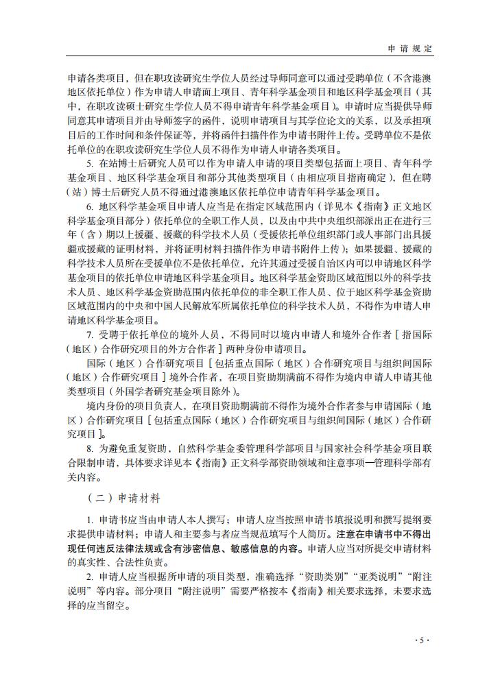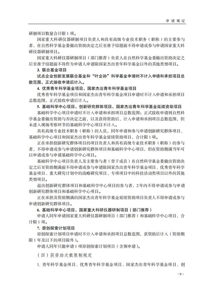申请规定-节选自《2024年度国家自然科学基金项目指南》