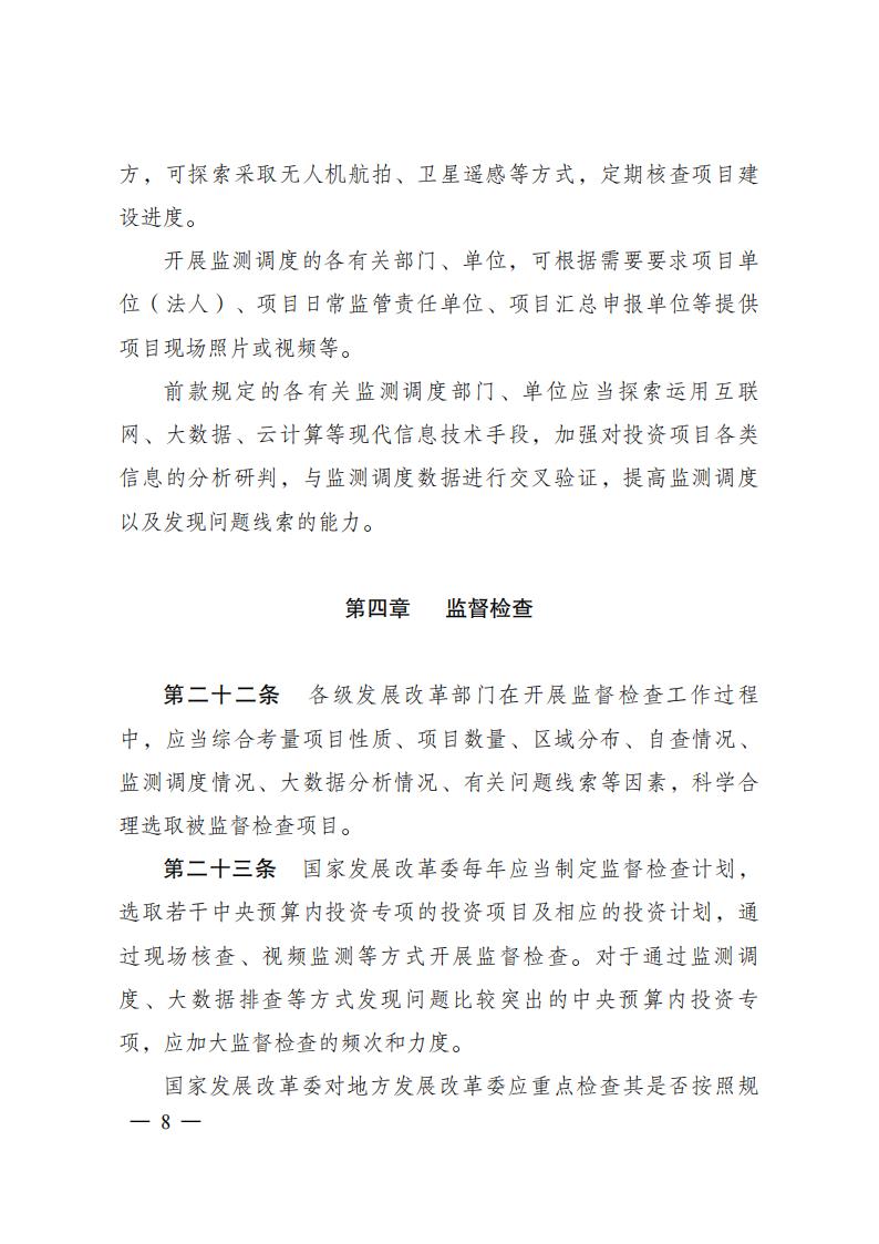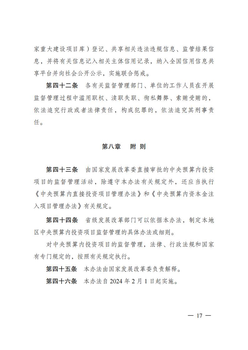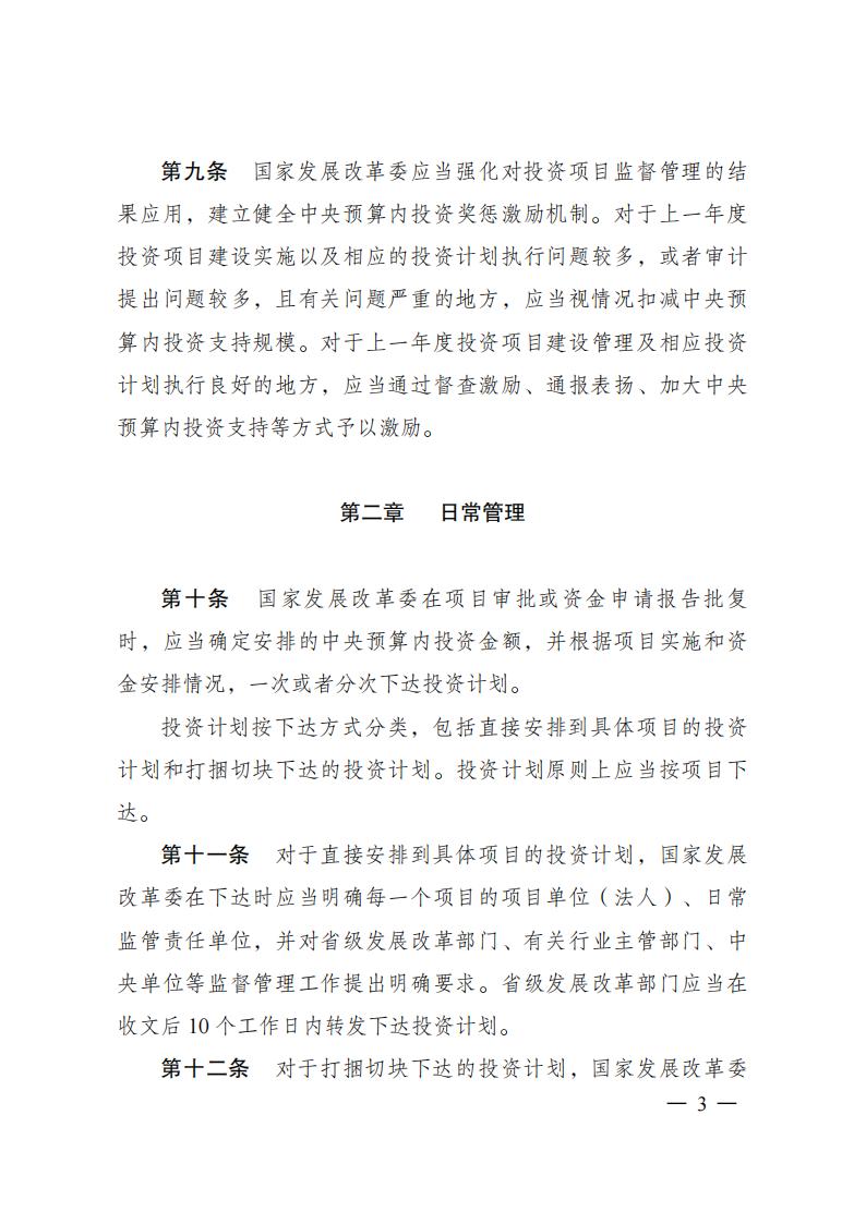 《中央预算内投资项目监督管理办法》 2023年第10号令