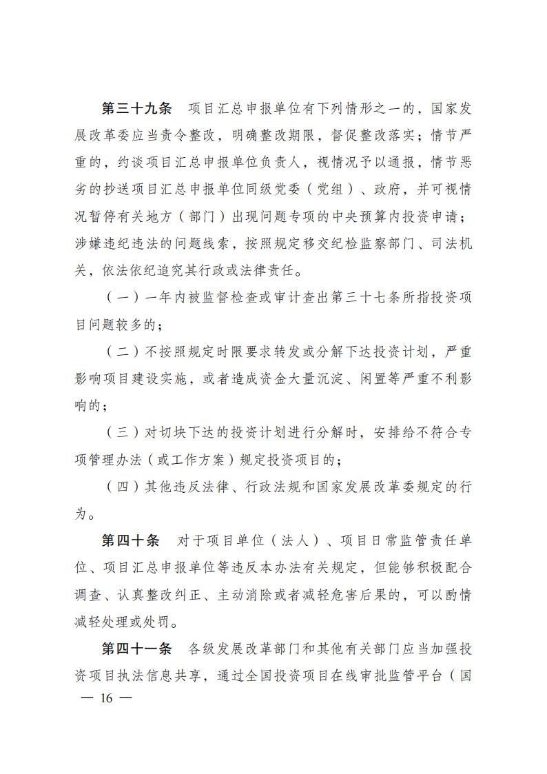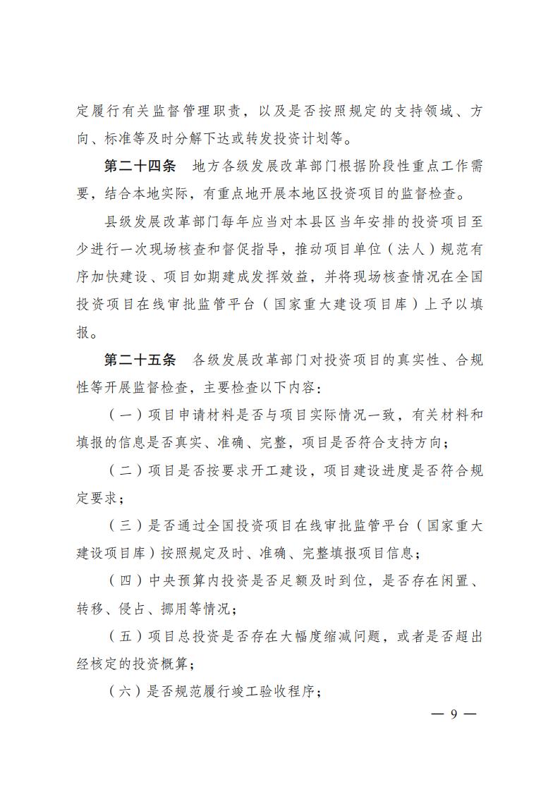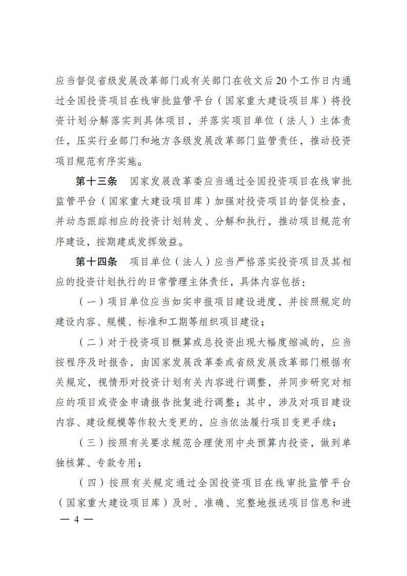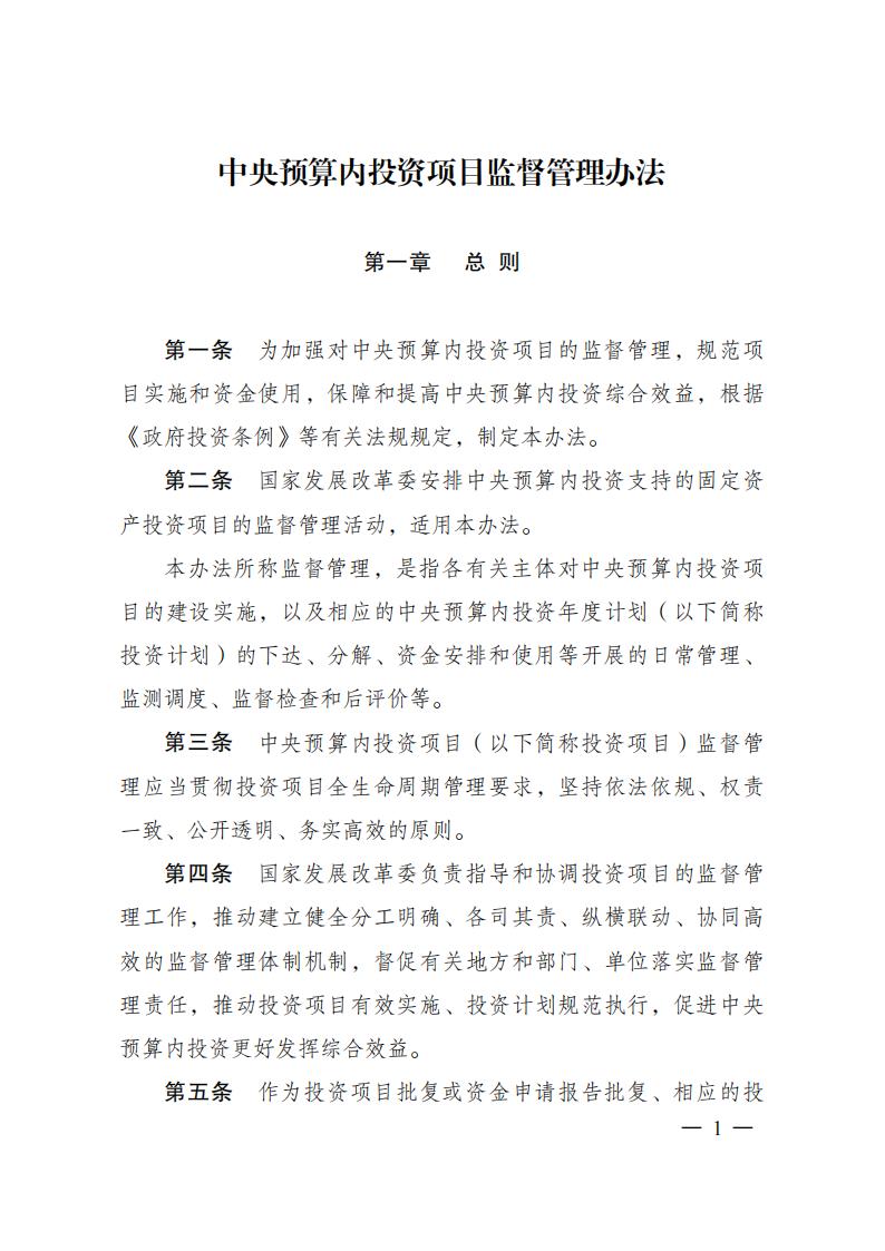 《中央预算内投资项目监督管理办法》 2023年第10号令