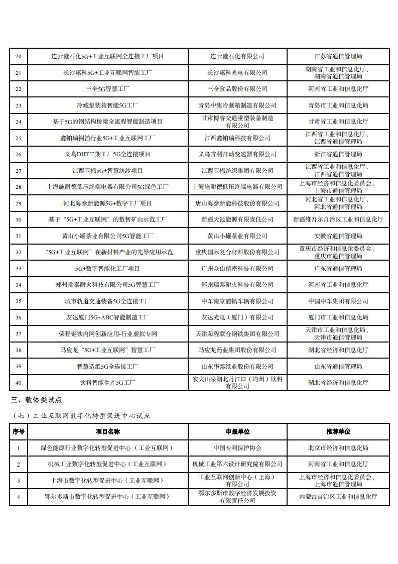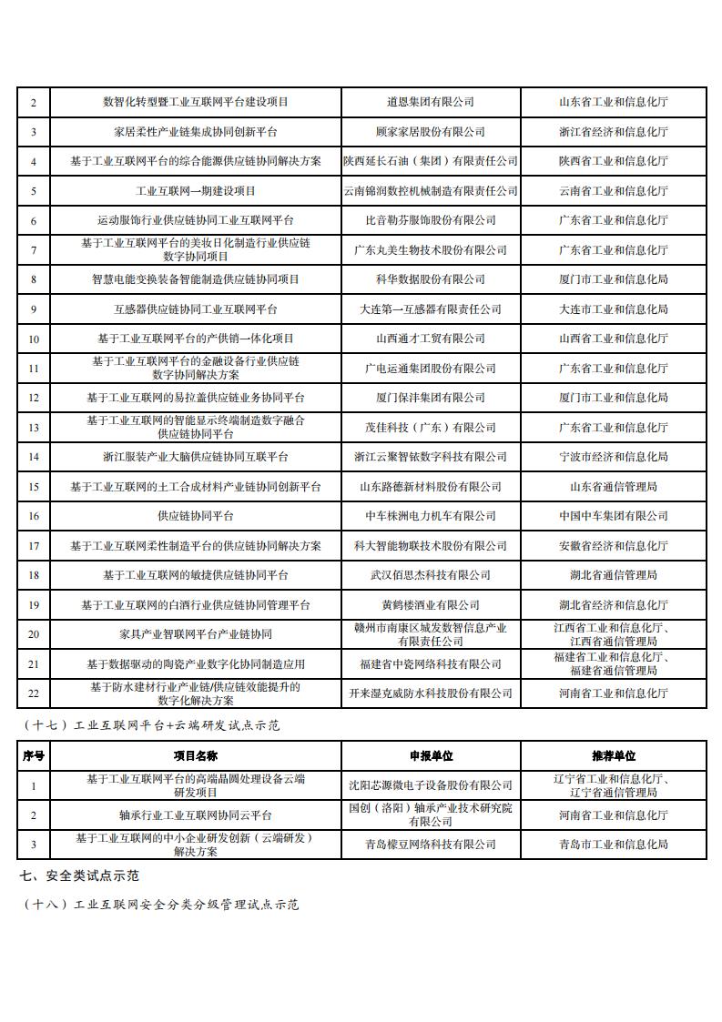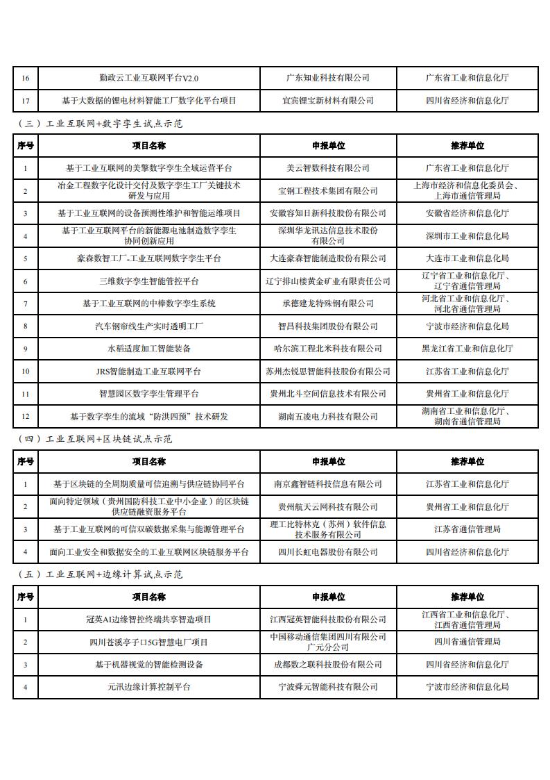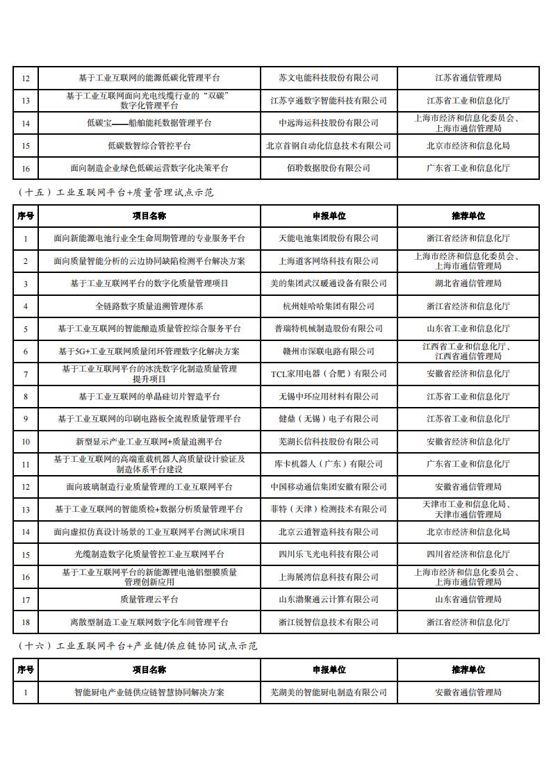根据《工业和信息化部办公厅关于组织开展2023年工业互联网试点示范项目申报工作的通知》(工信厅信管函〔2023〕319号)要求,经企业自主申报、地方推荐、专家评审和网上公示,确定了 2023 年工业互联网试点示范项目名单,现予以公布。
