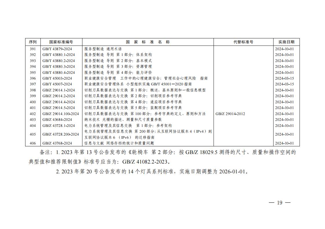 2024年第1号国家标准公告发布,406项国家标准正式发布