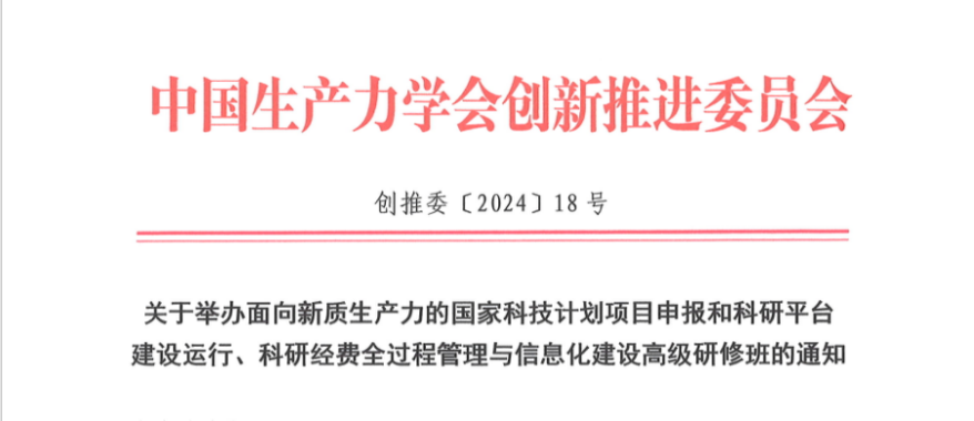 关于举办面向新质生产力的国家科技计划项目申报和科研平台建设运行、科研经费全过程管理与信息化建设高级研修班的通知