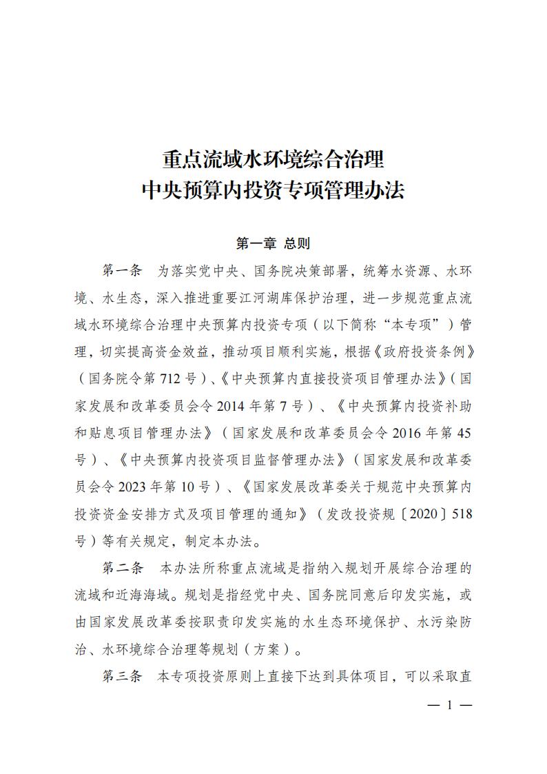 国家发改委|《重点流域水环境综合治理中央预算内投资专项管理办法》印发