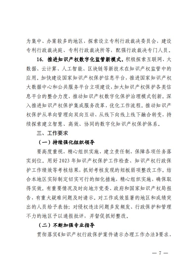 国家知识产权局|关于印发2024年全国知识产权行政保护工作方案的通知