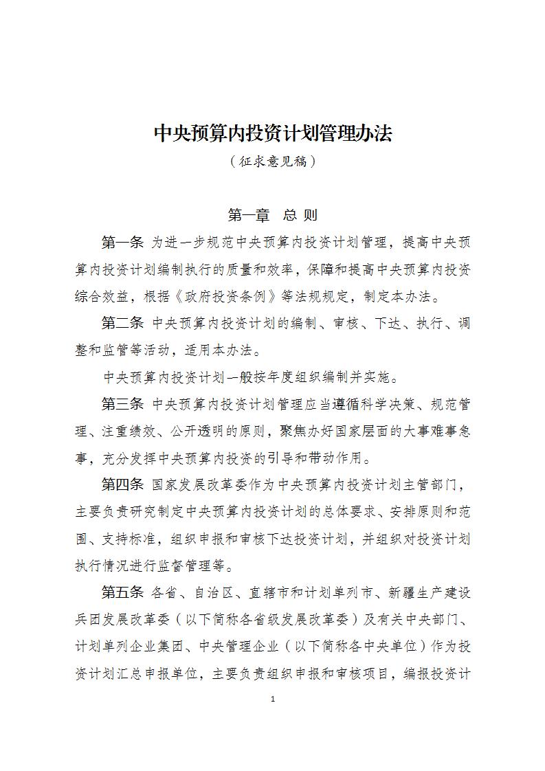 关于《中央预算内投资计划管理办法(征求意见稿)》公开征求意见的公告