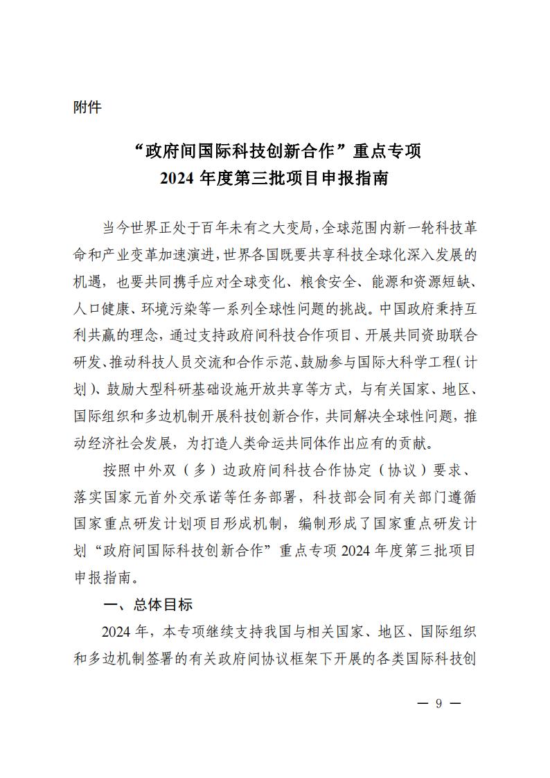 科技部|国家重点研发计划“政府间国际科技创新合作”重点专项2024年度第三批项目申报指南发布