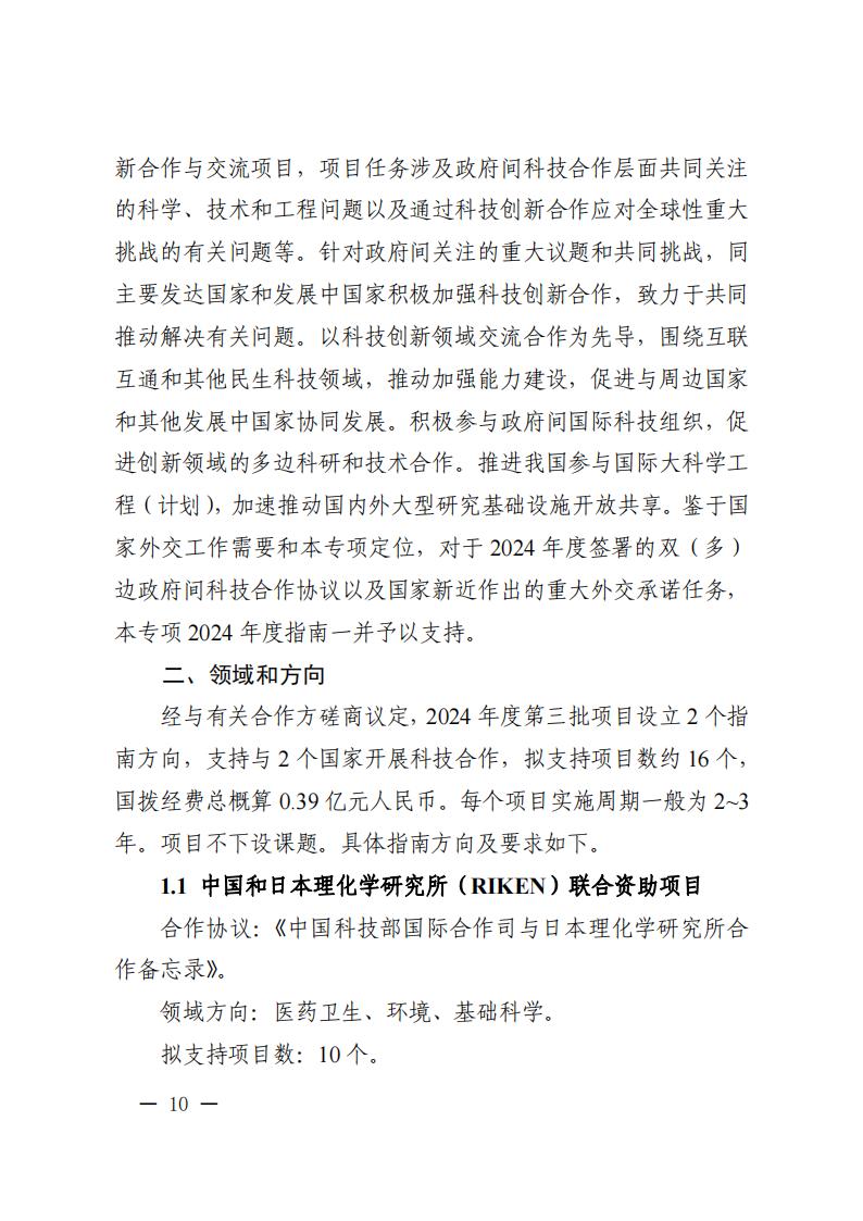 科技部关于发布国家重点研发计划“政府间国际科技创新合作”重点专项2024年度第三批项目申报指南的通知