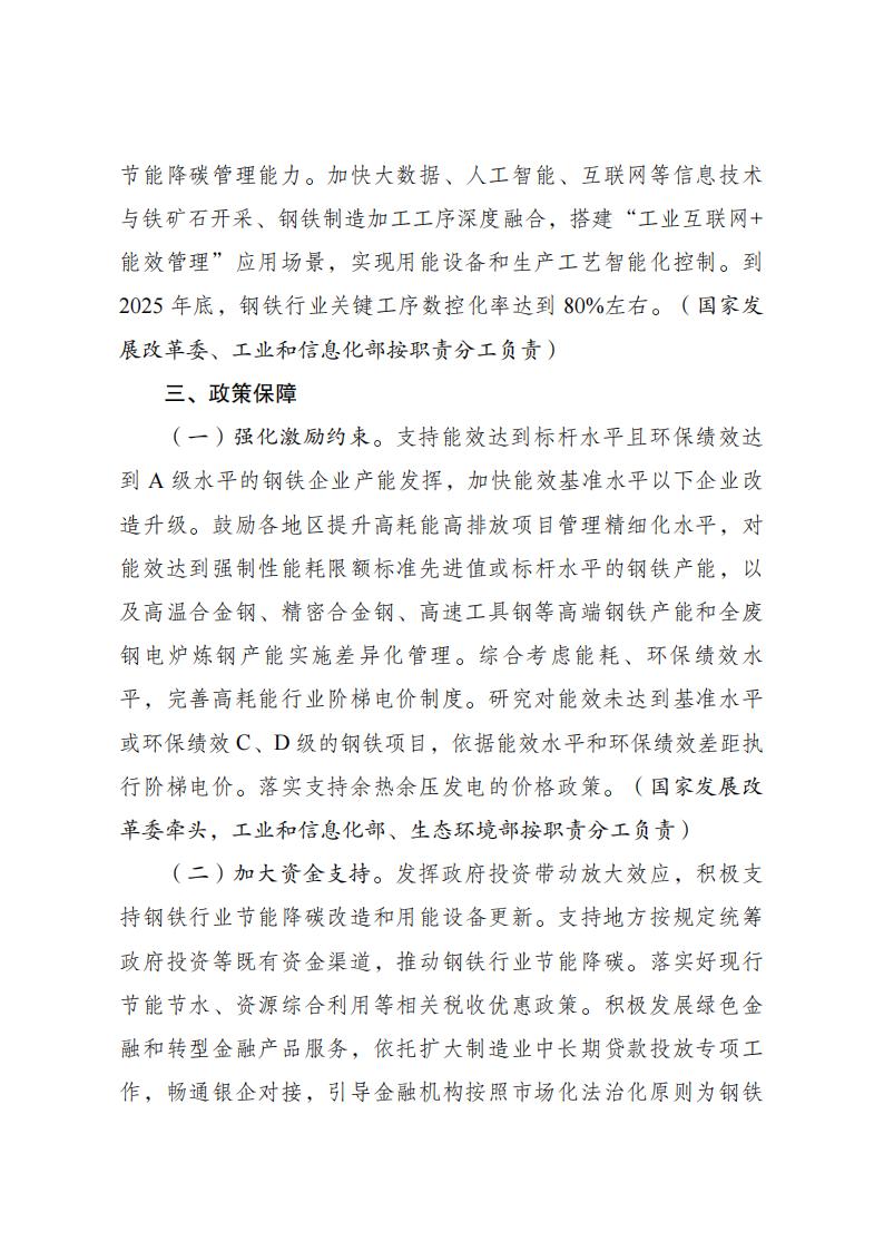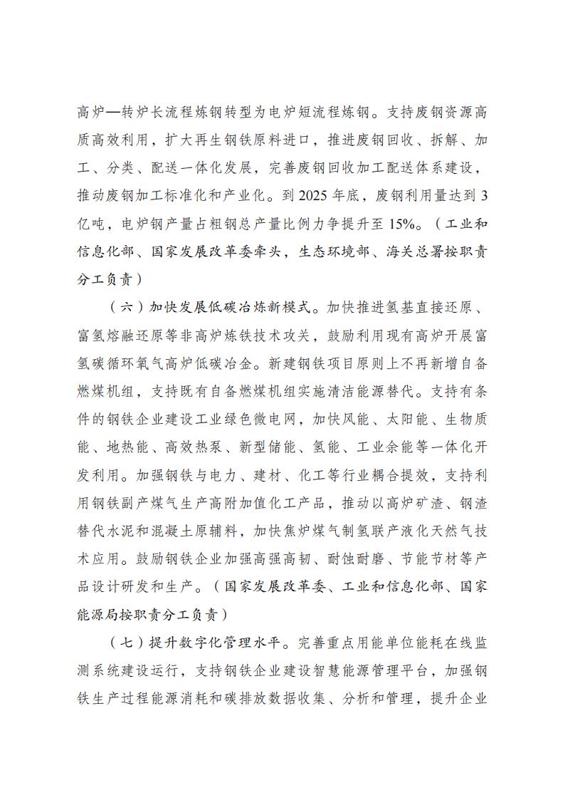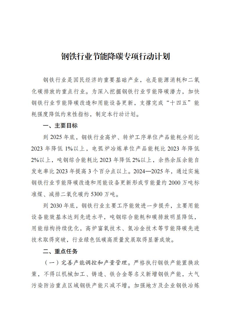 国家发改委等五部门关于印发 《钢铁行业节能降碳专项行动计划》的通知