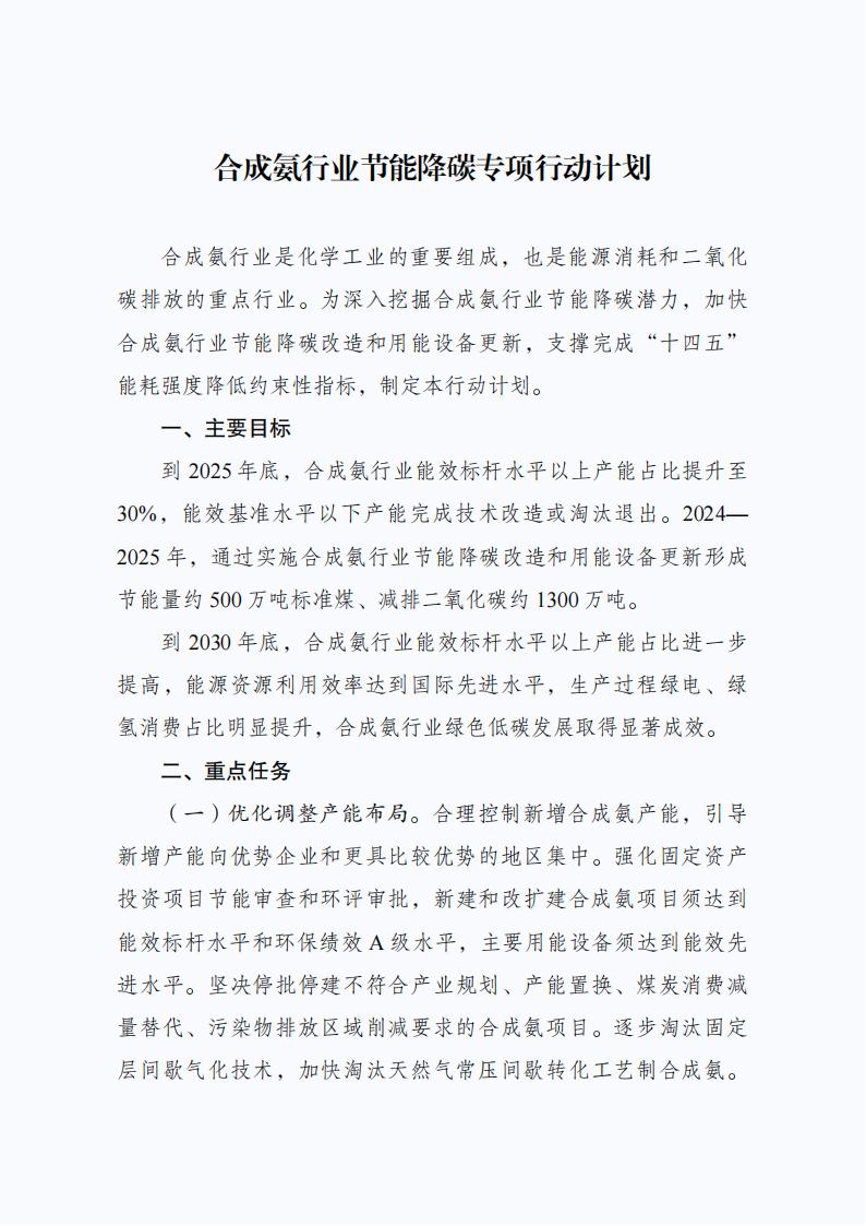 为全面贯彻党的二十大精神,认真落实党中央、国务院决策部署,实施全面节约战略,加大节能降碳工作力度,深入推进合成氨行业节能降碳改造和用能设备更新,支撑完成“十四五”能耗强度降低约束性指标,国家发展改革委、工业和信息化部、生态环境部、市场监管总局、国家能源局等部门制定了《合成氨行业节能降碳专项行动计划》。现印发给你们,请认真抓好落实。
