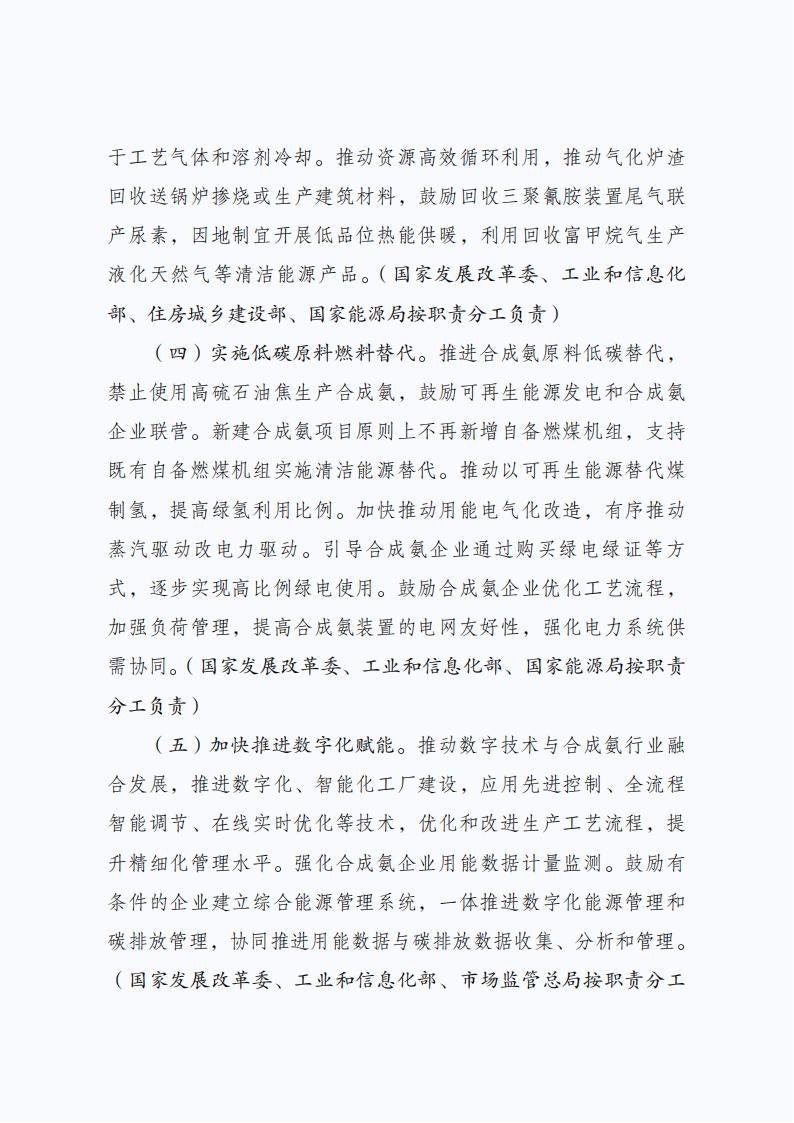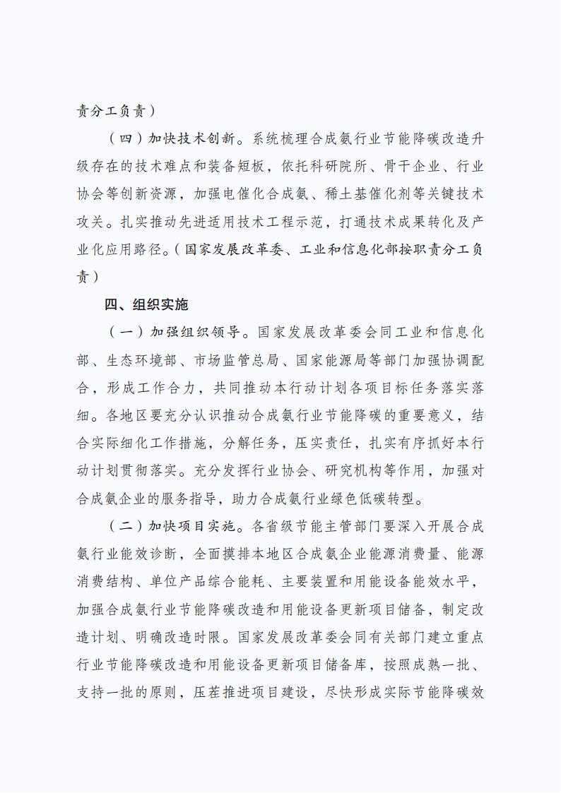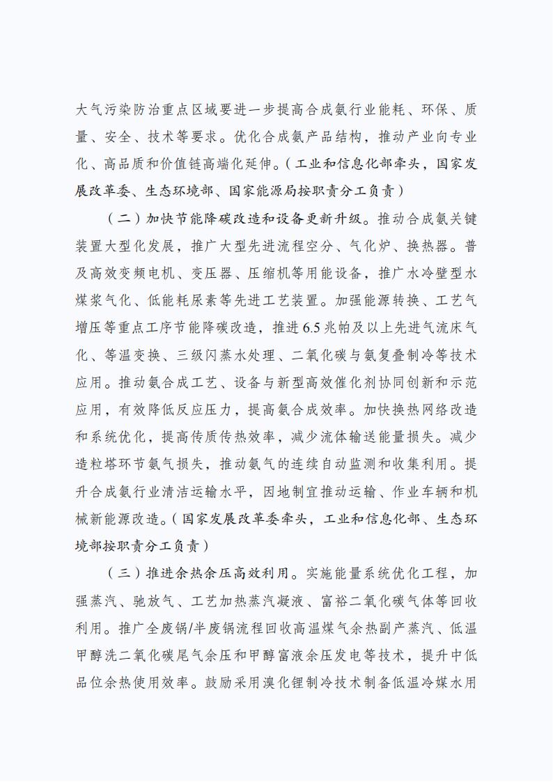 国家发改委等五部门关于印发 《合成氨行业节能降碳专项行动计划》的通知