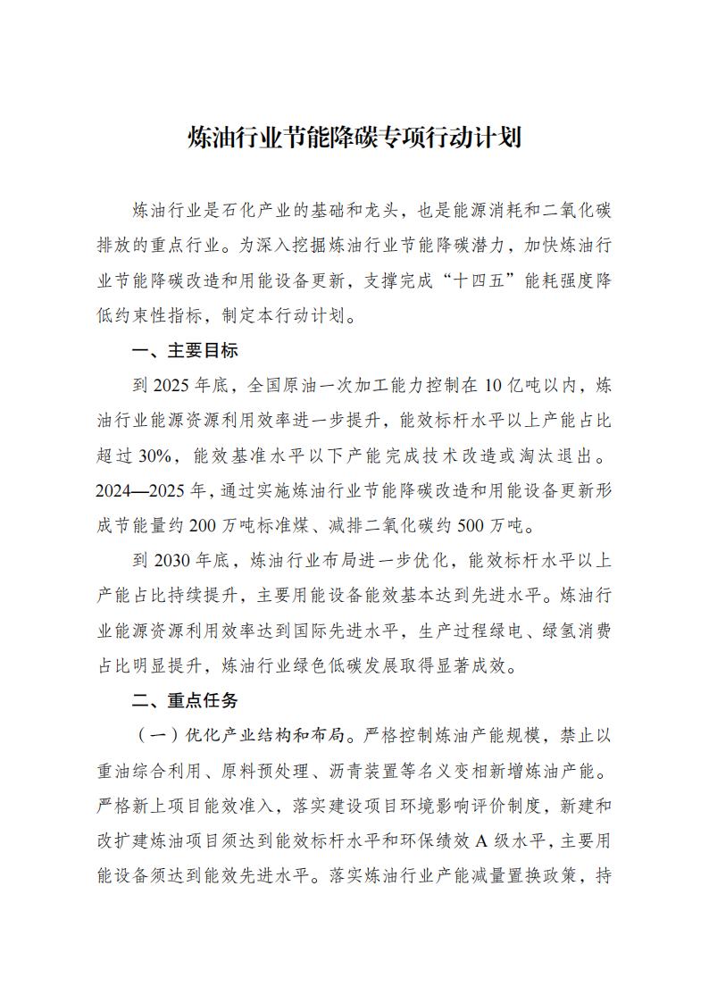 国家发改委等五部门关于印发 《炼油行业节能降碳专项行动计划》的通知