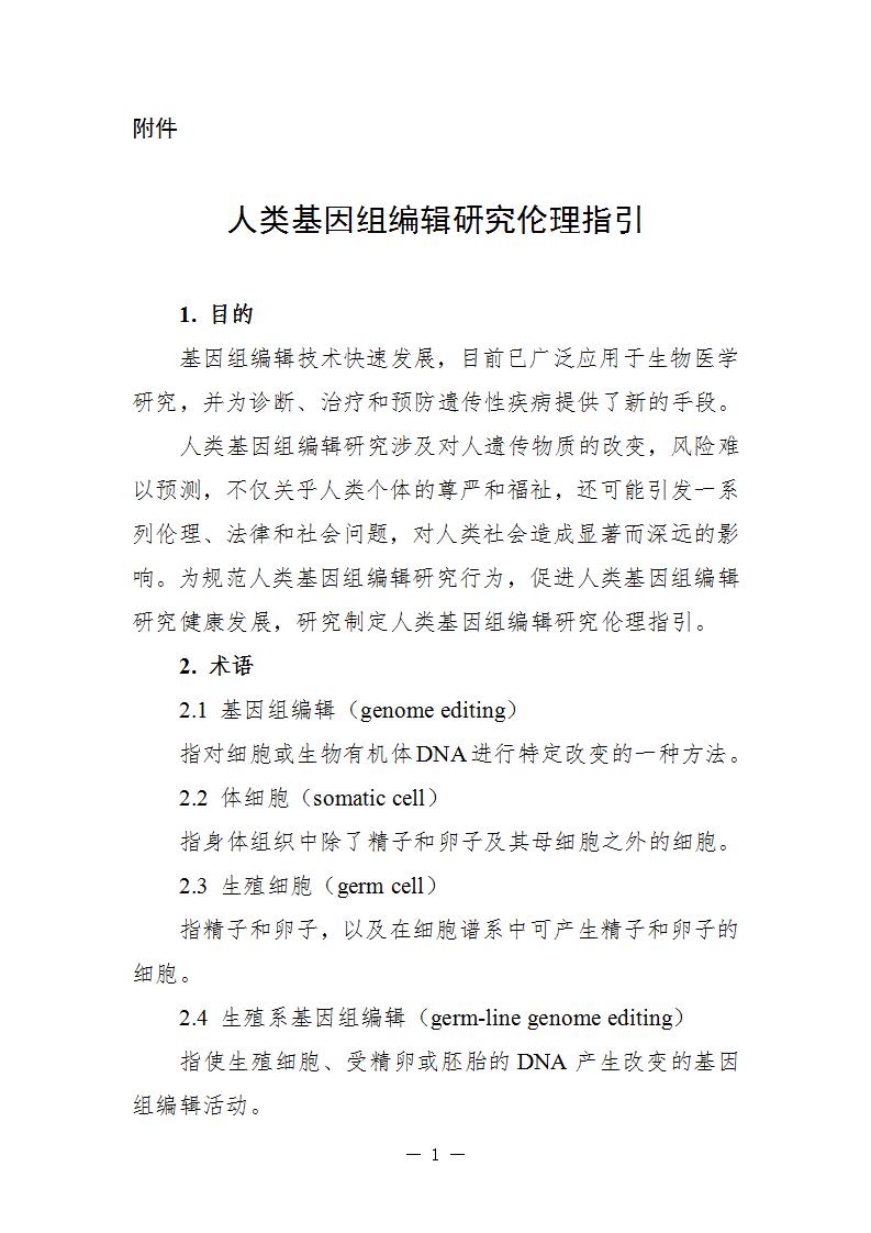 为规范人类基因组编辑研究行为,促进人类基因组编辑研究健康发展,国家科技伦理委员会医学伦理分委员会研究编制了《人类基因组编辑研究伦理指引》,供相关科研机构和科研人员参考使用。