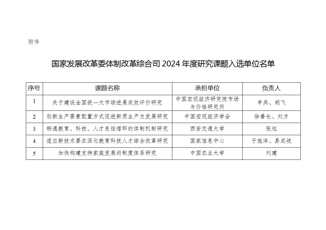 附件:国家发展改革委体制改革综合司2024年度研究课题入选单位名单
