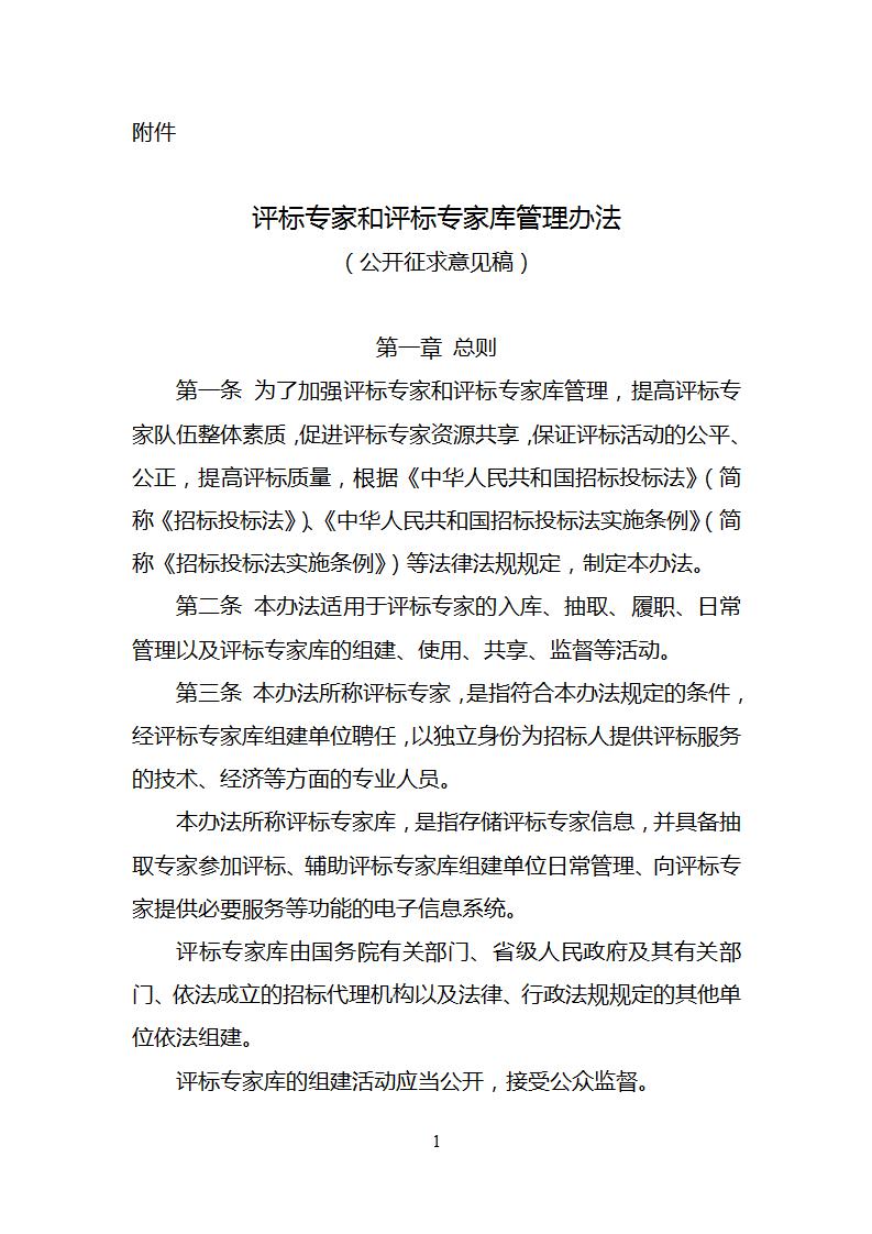 关于向社会公开征求《评标专家和评标专家库管理办法(公开征求意见稿)》意见的公告