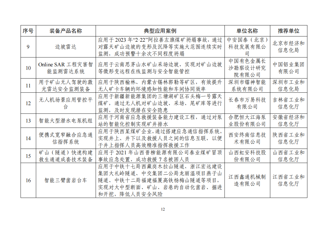 工信部|“2024年安全应急装备应用推广典型案例”入选项目公示