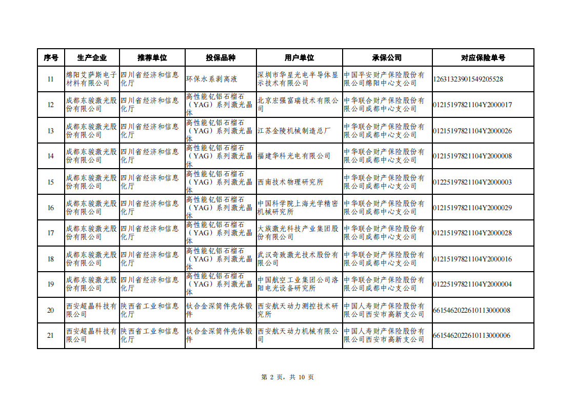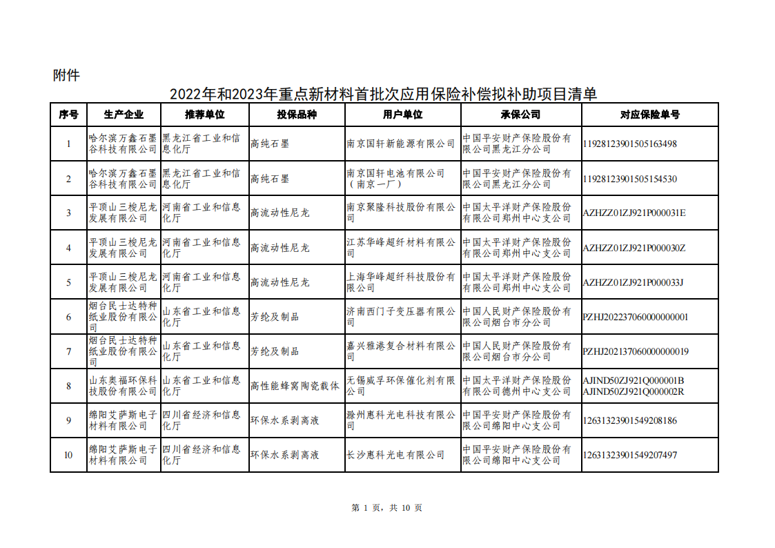 附件:2022年和2023年重点新材料首批次应用保险补偿拟补助项目清单
