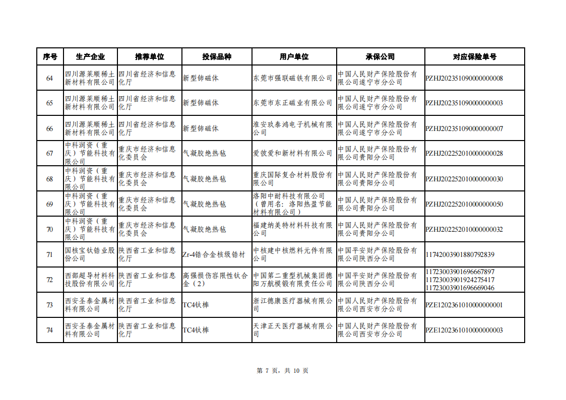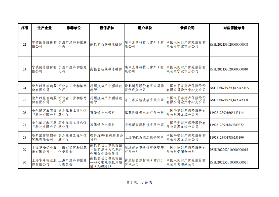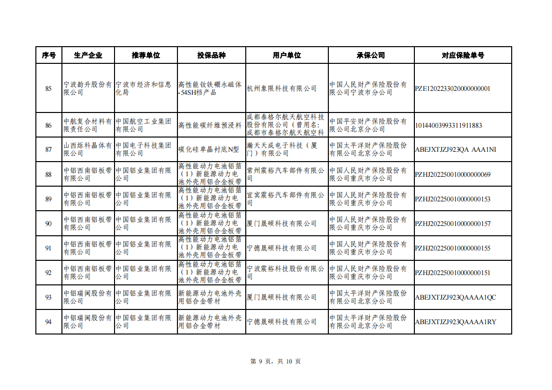 2022年和2023年重点新材料首批次应用保险补偿拟补助项目公示